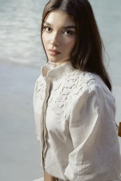 Cuello holter con mangas 3/4 con elástico y en la parte frontal detalles hecho artesanalmente.