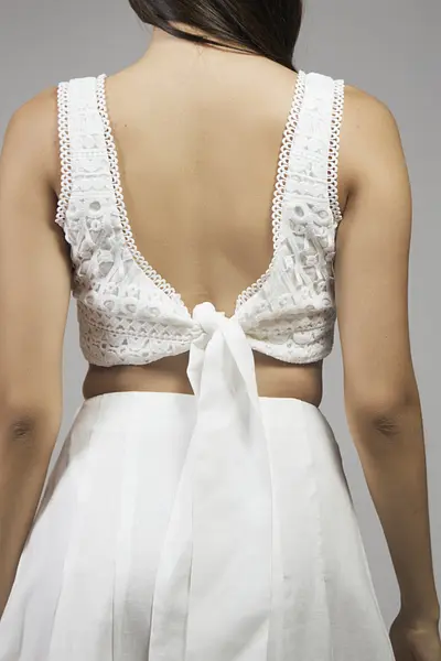 Top en lino y guipiur con amarre en parte trasera