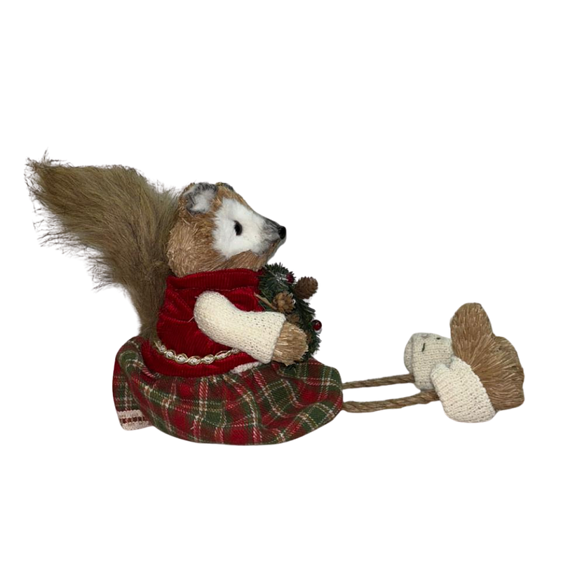 La Ardilla Navideña con Vestido y Piernas Colgantes es un adorno único que combina ternura y estilo festivo para tu decoración navideña. Con un diseño detallado que incluye un vestido navideño elegante y piernas colgantes, es perfecta para decorar chimeneas, repisas, mesas, sillas o estantes. Fabricada con materiales de calidad y acabados delicados, aporta un toque acogedor y encantador a cualquier espacio. Ideal para quienes buscan adornos navideños originales, decoraciones con personajes y detalles festivos para el hogar.