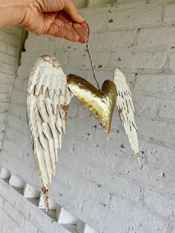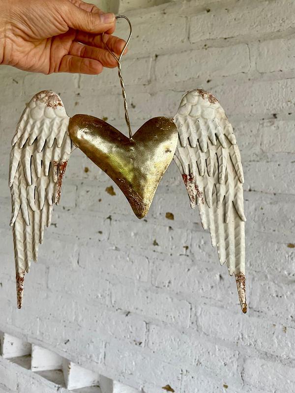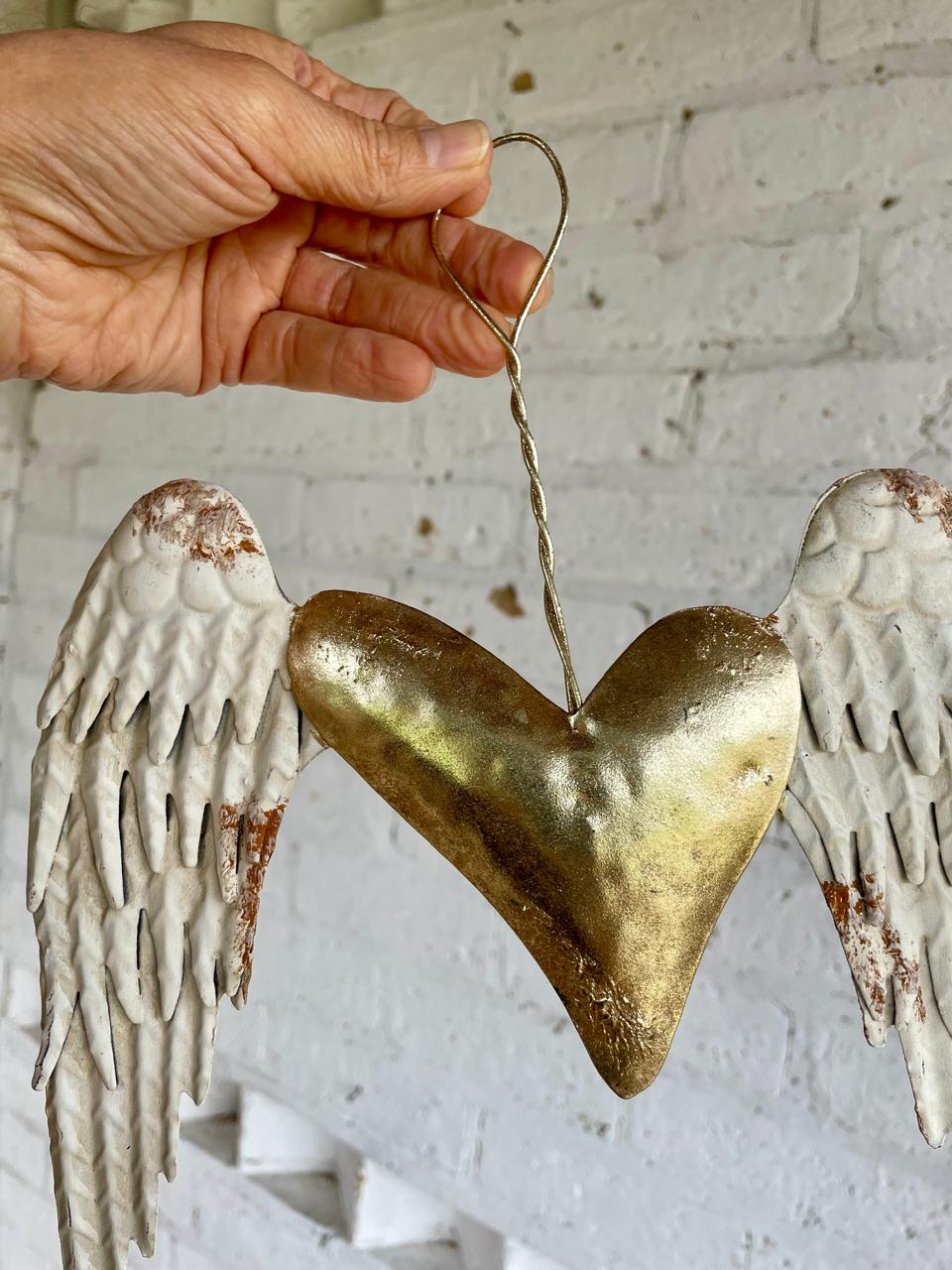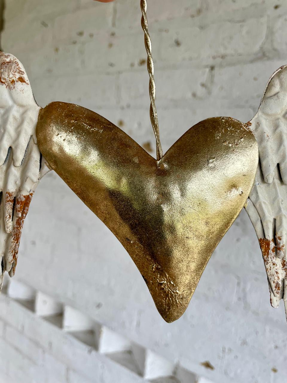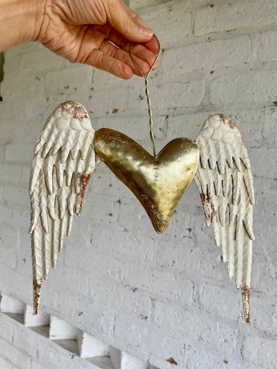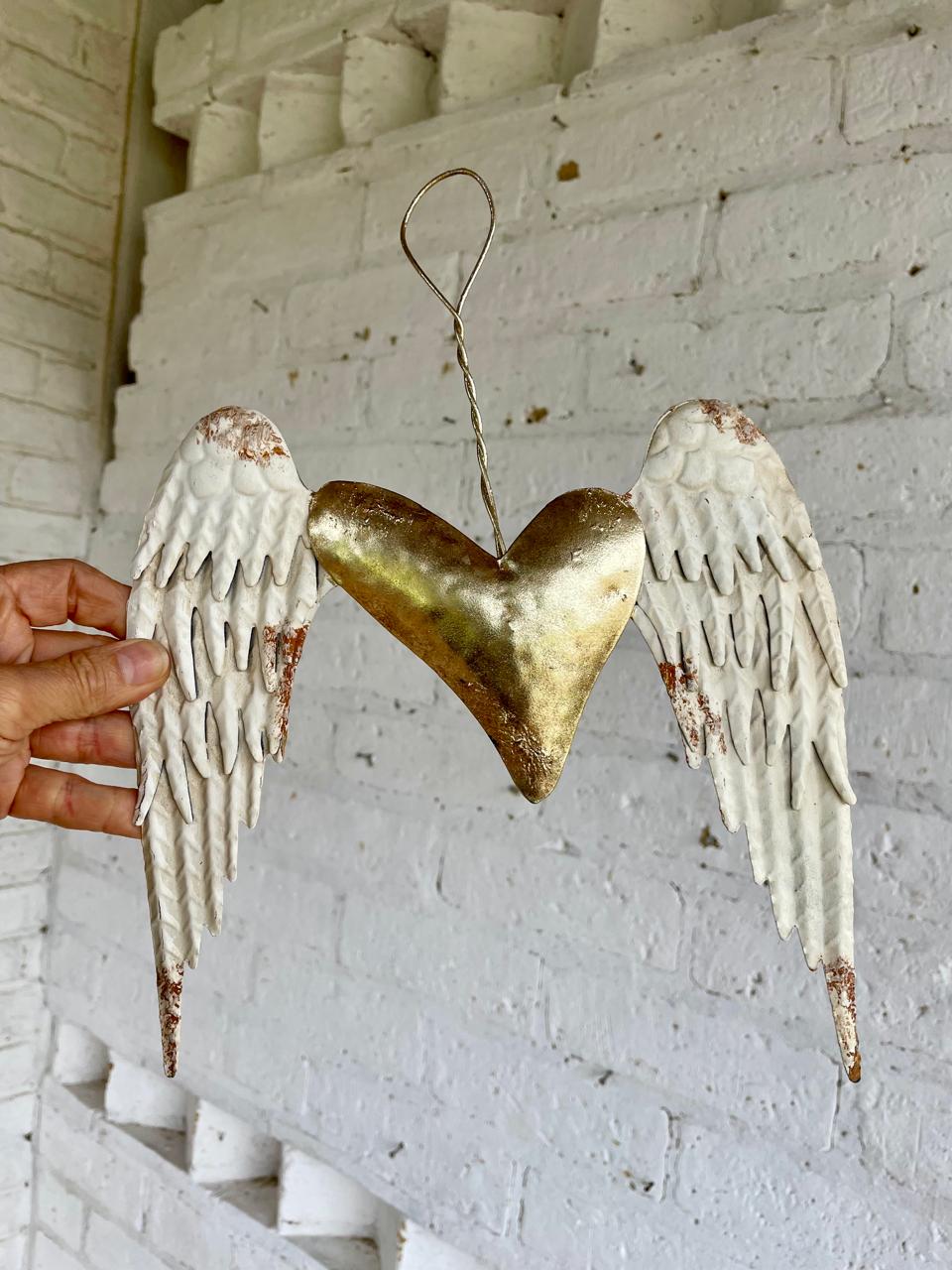 Estas alas metálicas con aspecto envejecido están unidas por un corazón dorado.