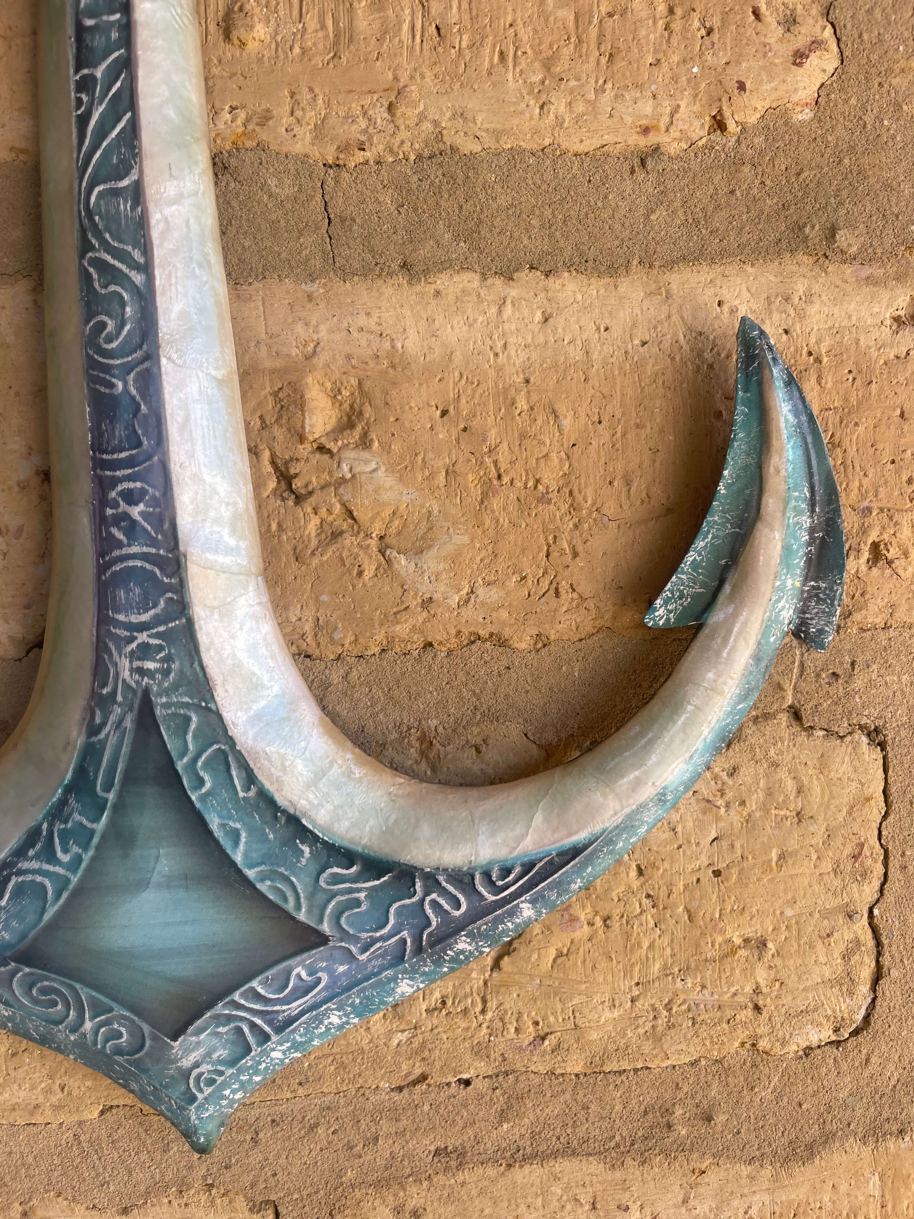 Elaborada artesanalmente en Filipinas, la base es metálica decorada con pintura horneada, algunas partes están recubiertas de nácar.