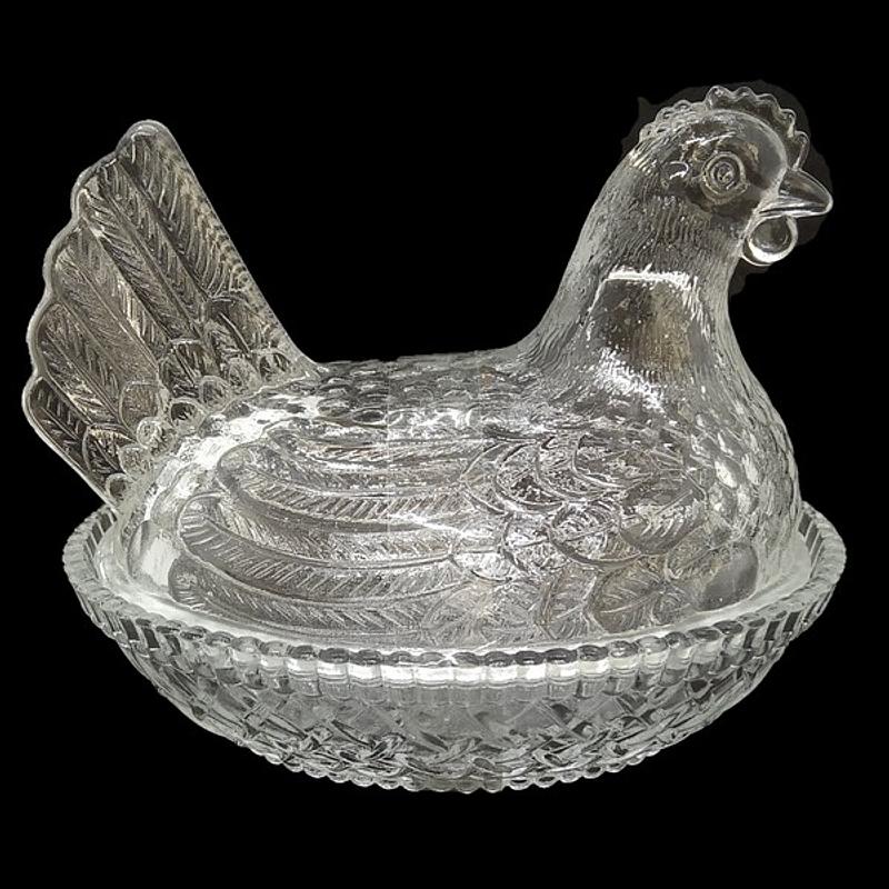 Gallina grande en vidrio artesanal, el cuerpo de la gallina es la tapa de la base.