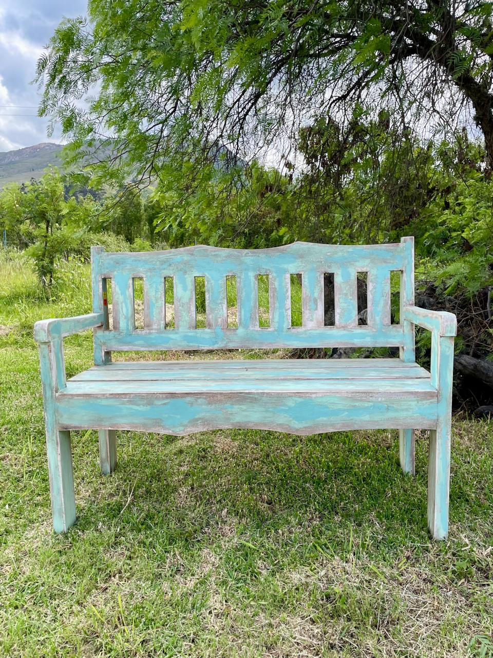 MEDIDAS: Alto del respaldar 90 cm. Alto del asiento 45,5 cm. Largo 120 cm. Ancho 48 cm.
