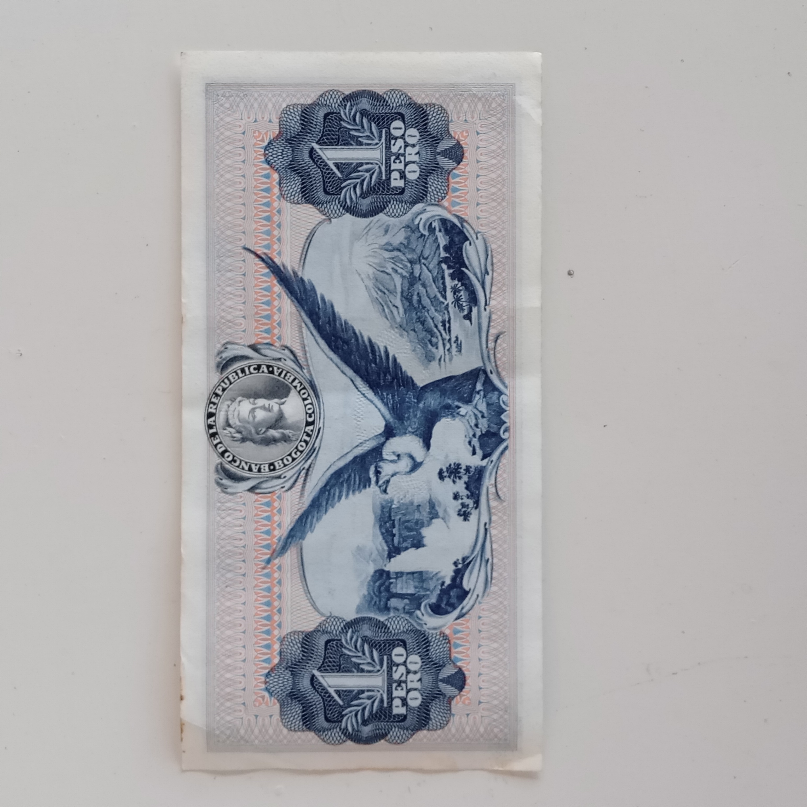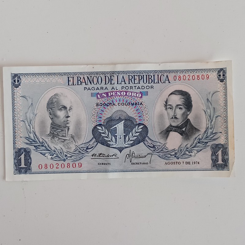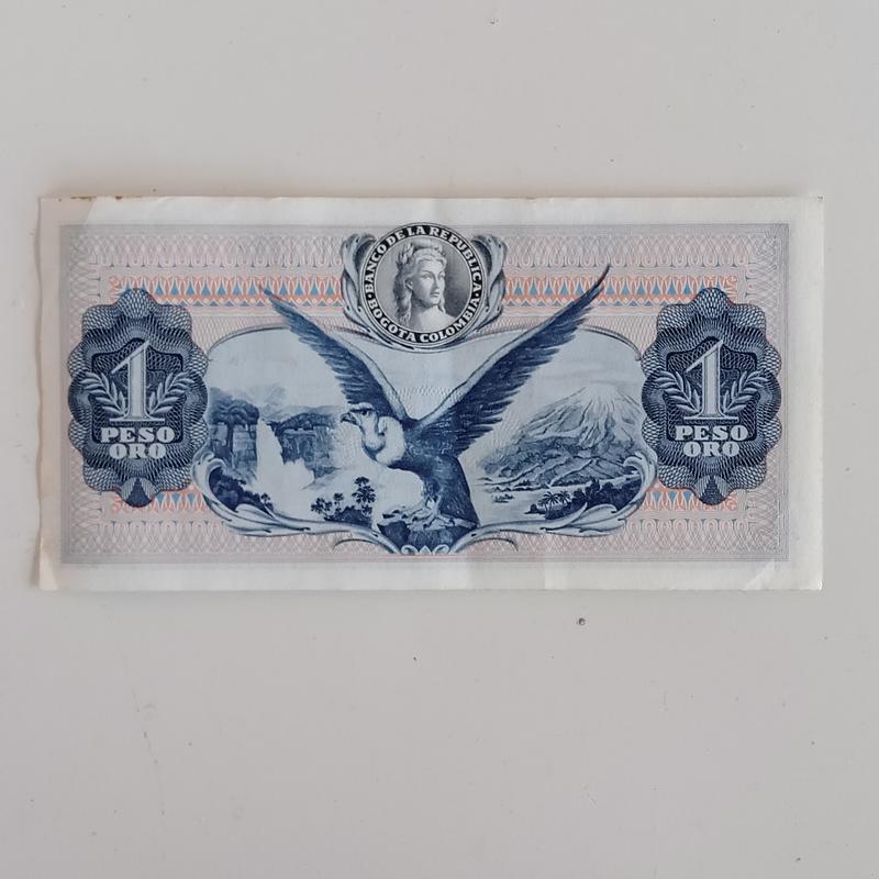 Billete de un peso emitido por el Banco de la República de Colombia en 1966. Se encuentra en exelente estado de conservación.
