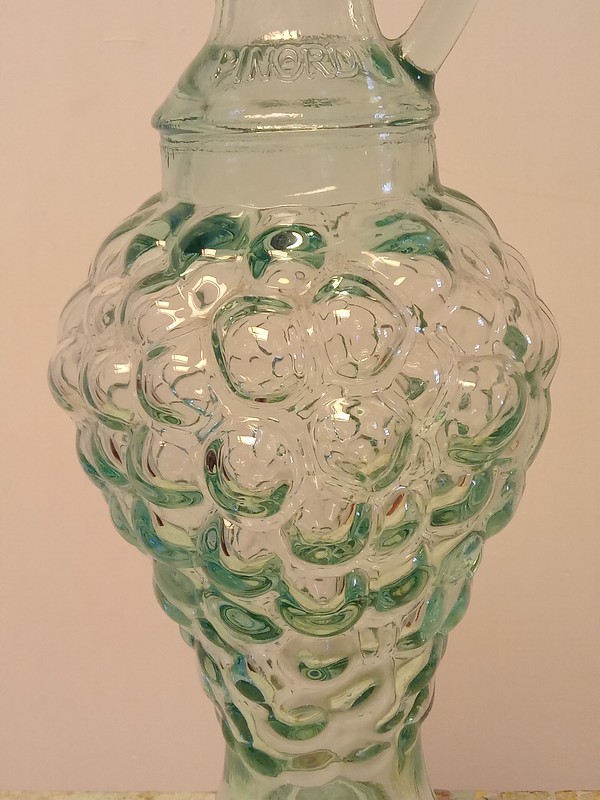 Esta ánfora de vidrio tiene la forma de un racimo de uvas. Esta botella decorativa se puede utilizar como decanter o para servir a la mesa un vino de postre.