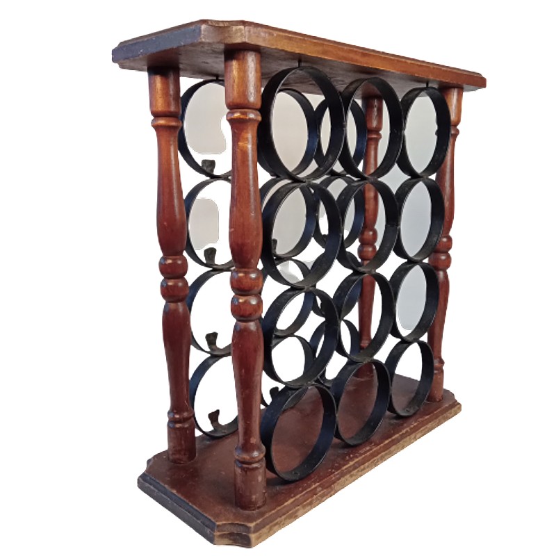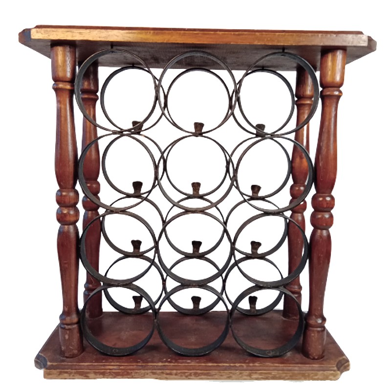 Botellero en hierro y madera para 12 botellas.