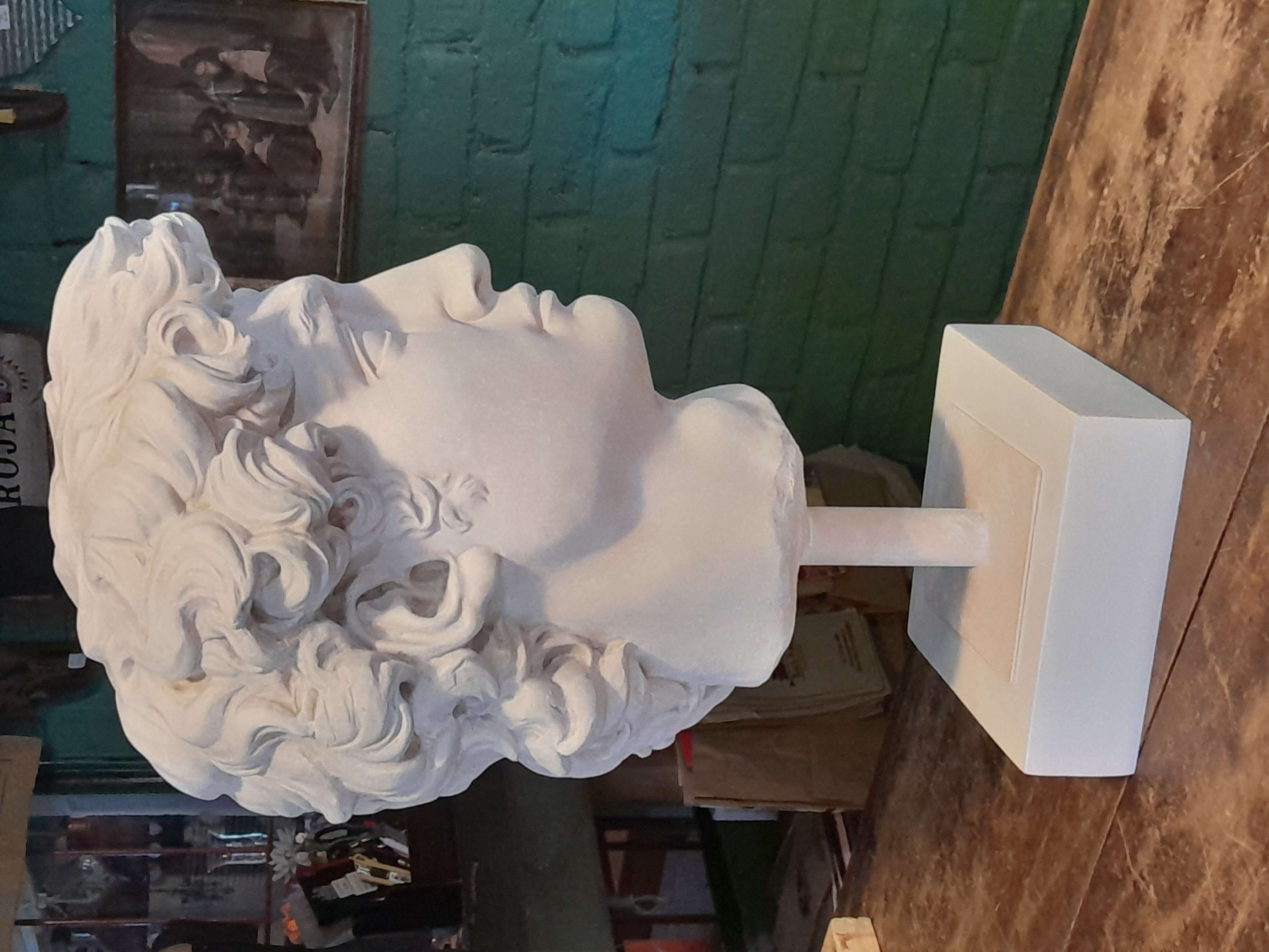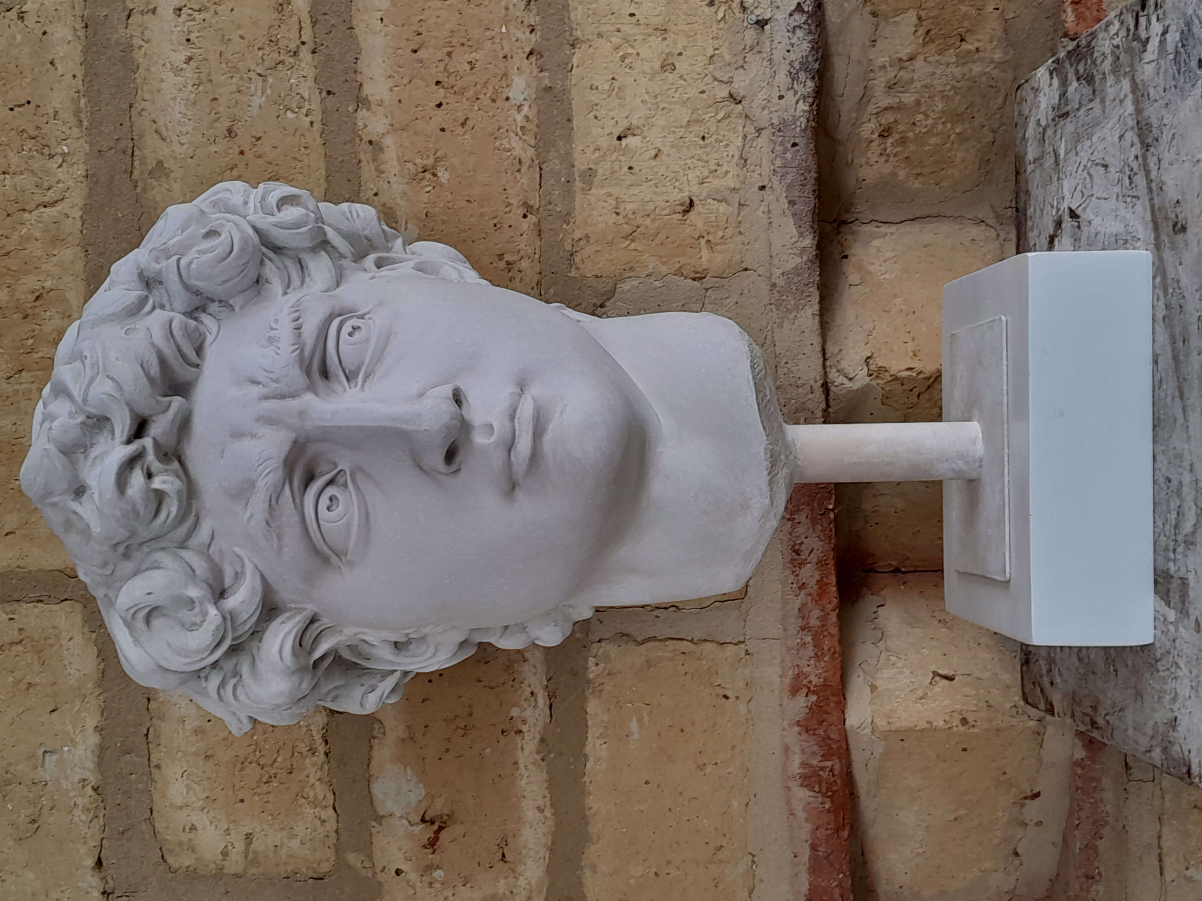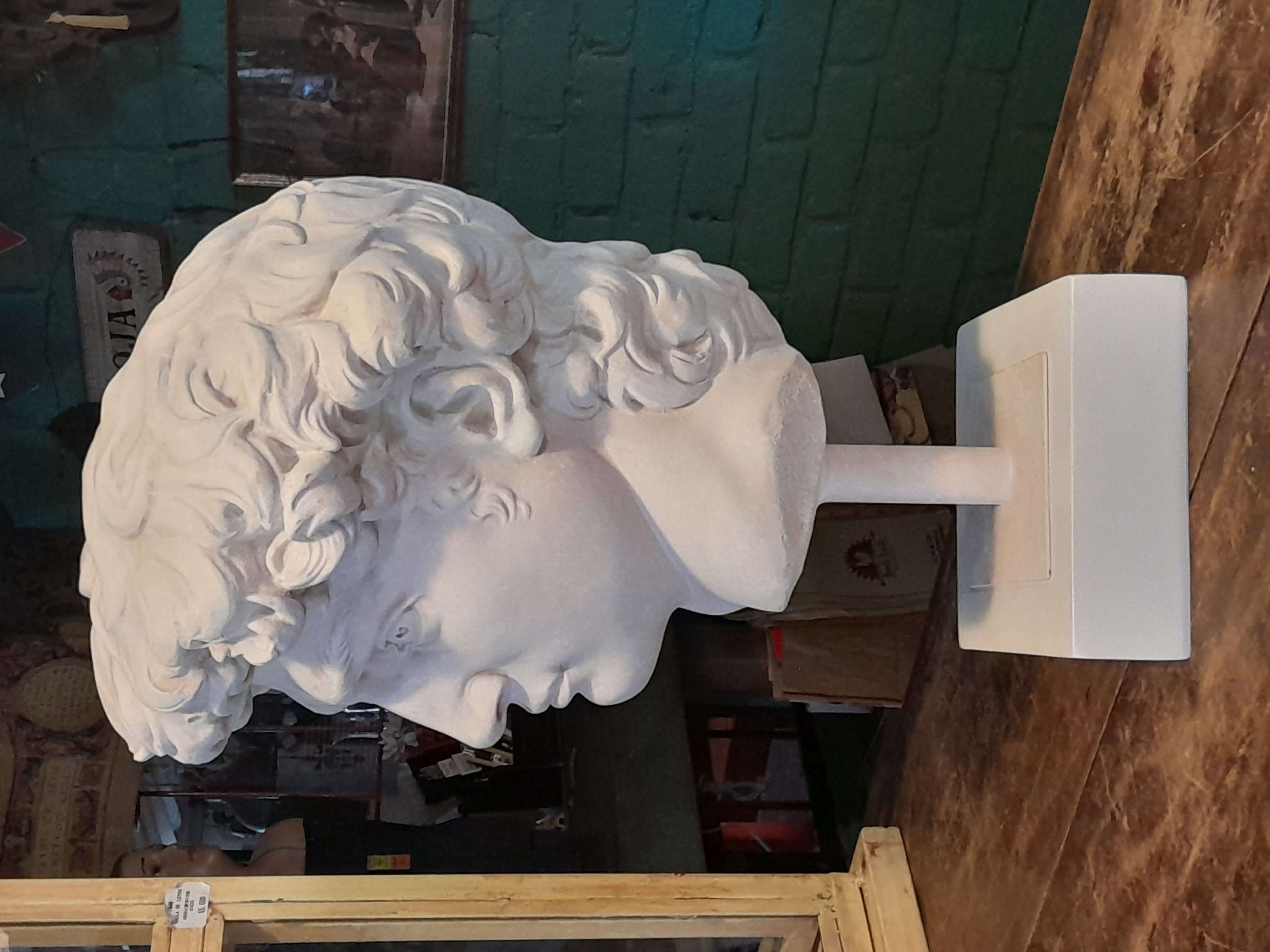 Reproducción en resina de la cabeza de David de Miguel Angel. Fundida en resina con apariencia de mármol blanco.