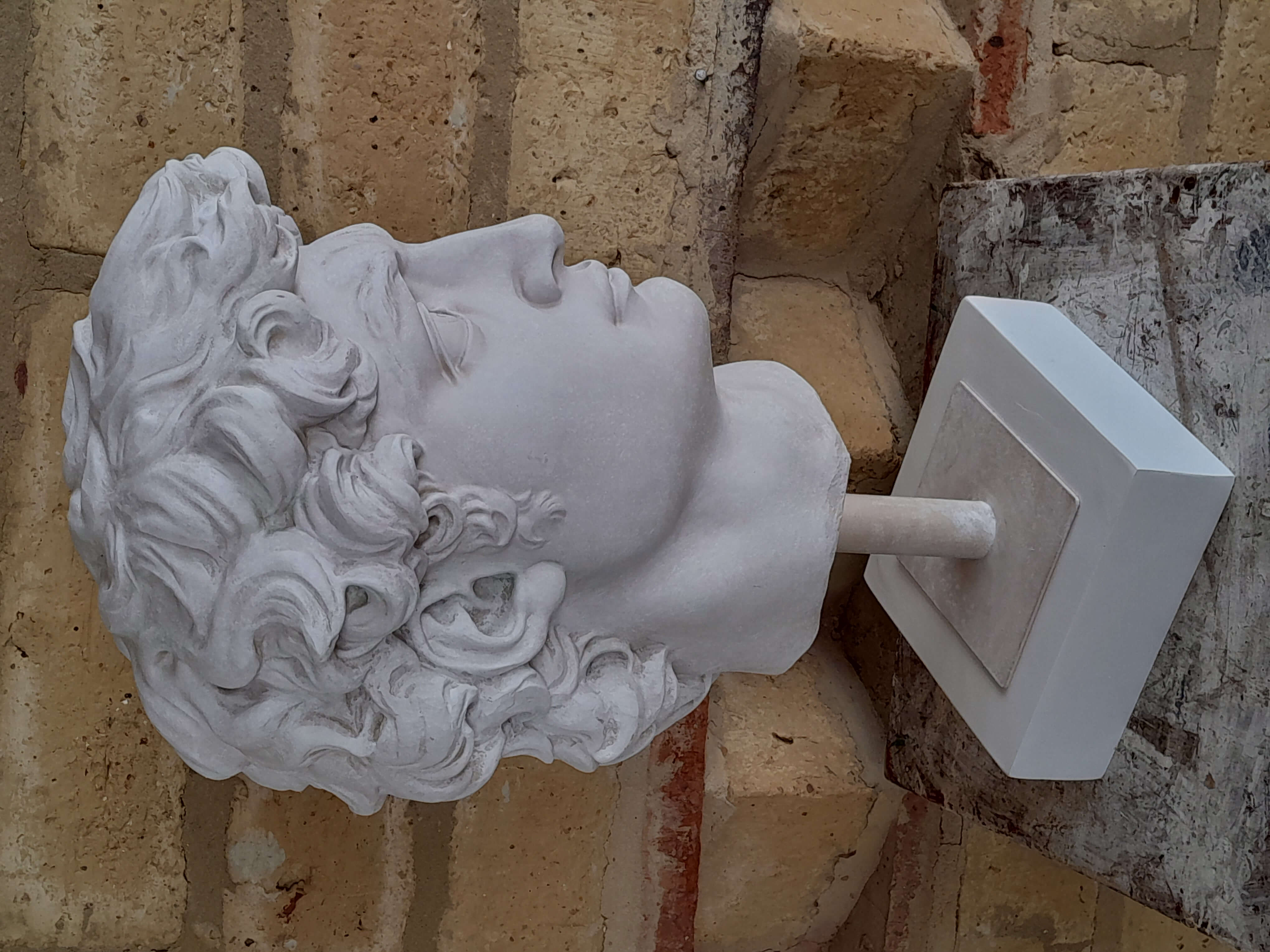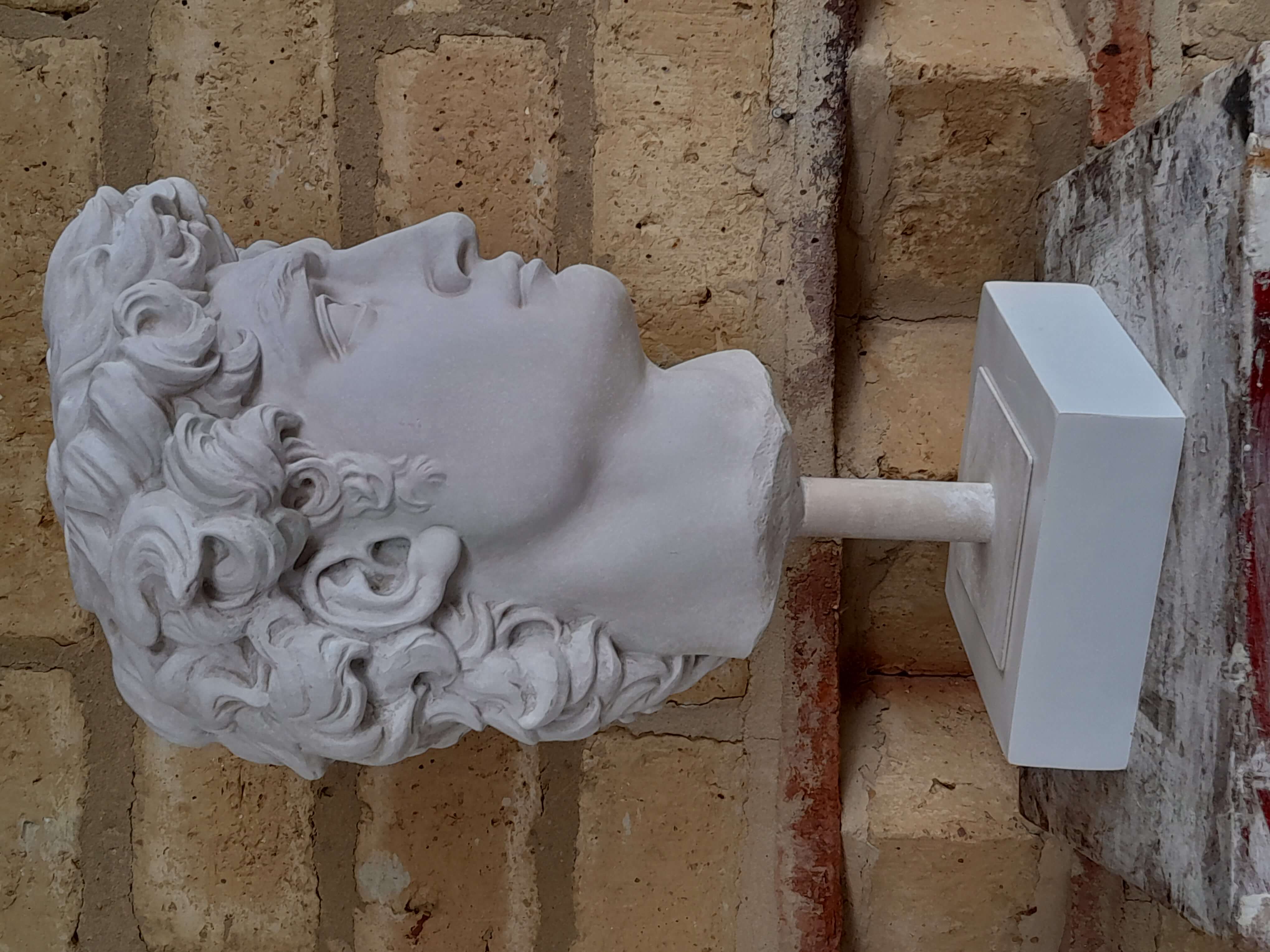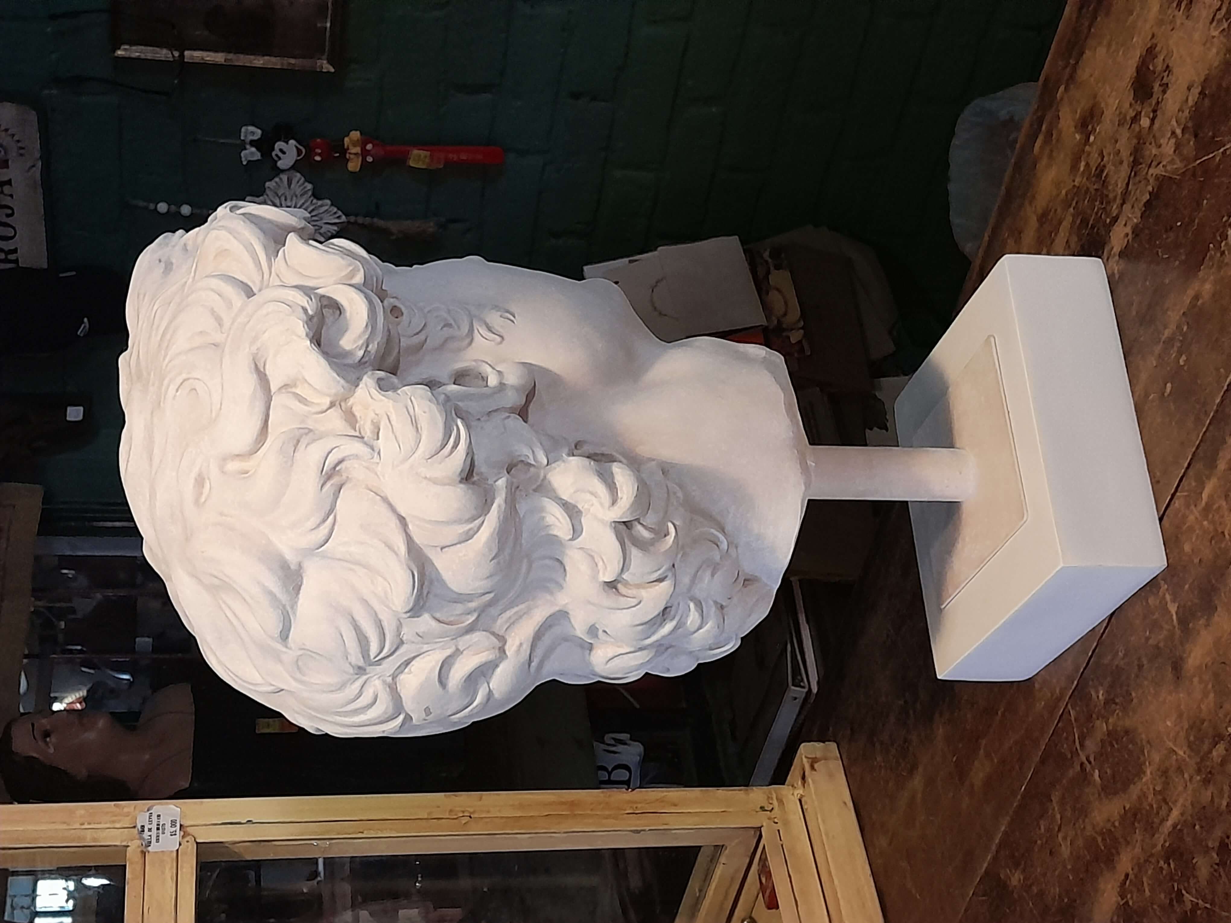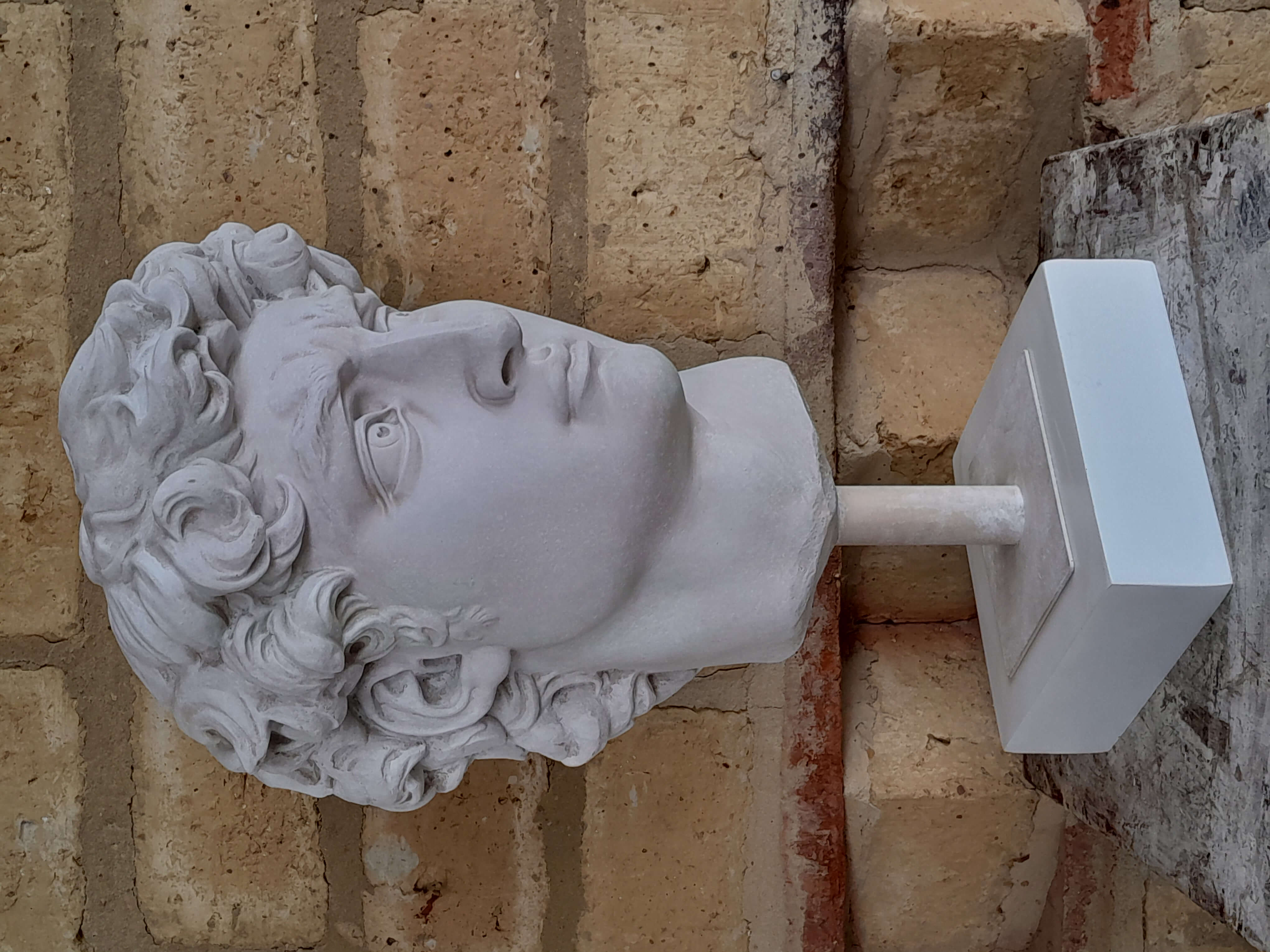 Reproducción en resina de la cabeza de David de Miguel Angel. Fundida en resina con apariencia de mármol blanco.