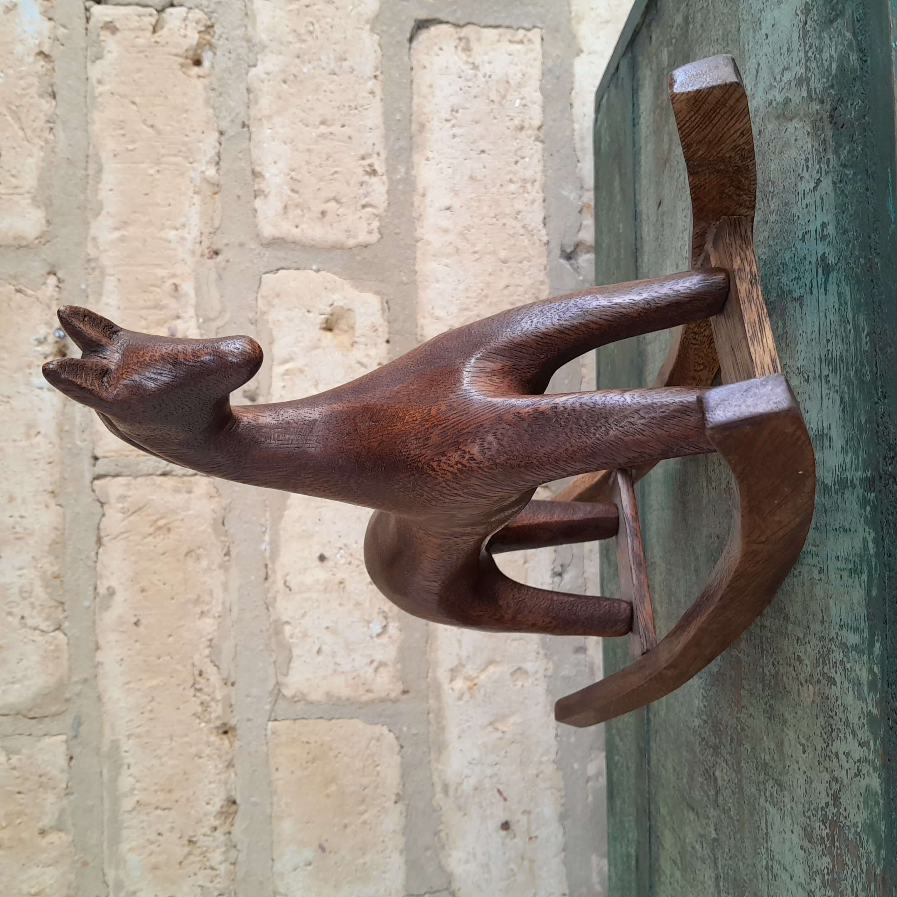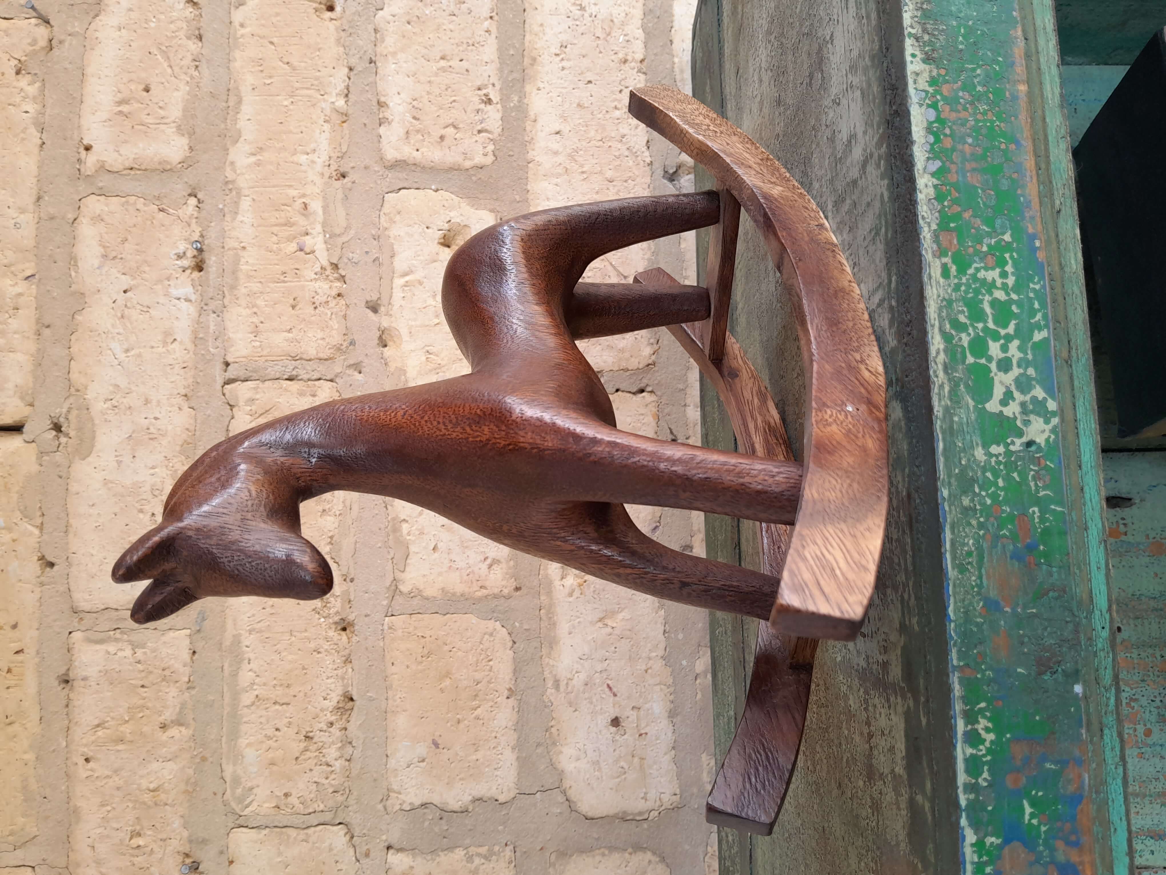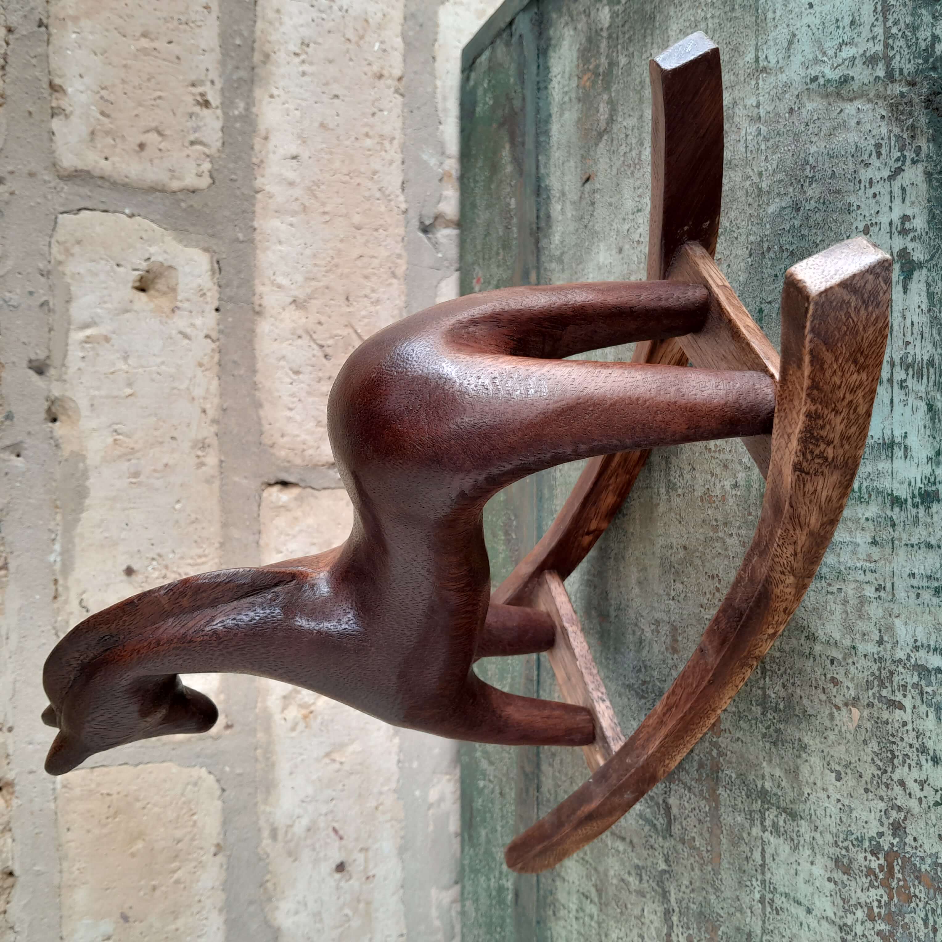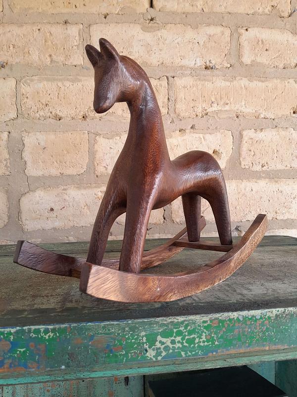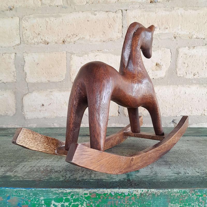 Figura de caballo mecedor tallado en madera artesanalmente.