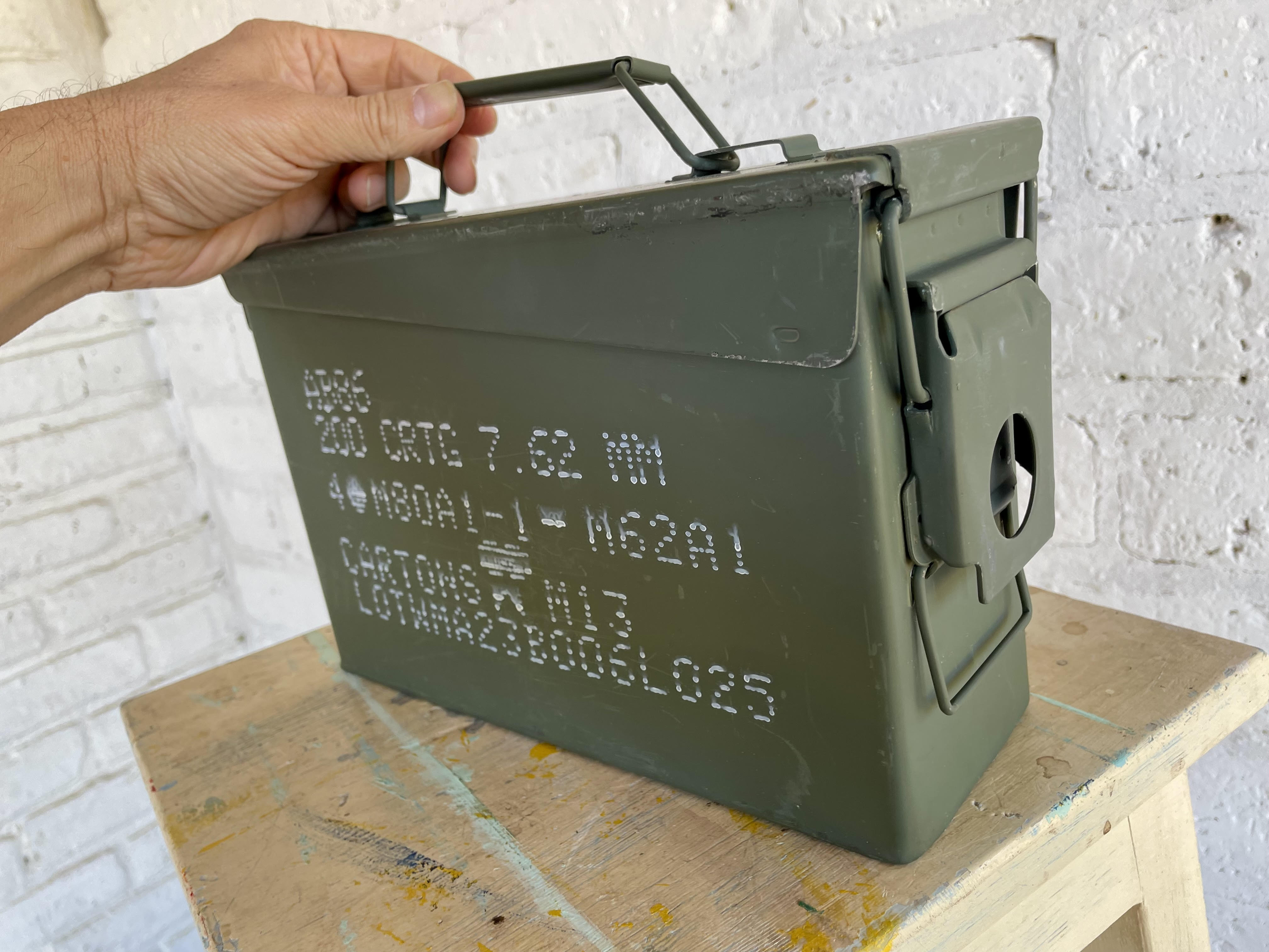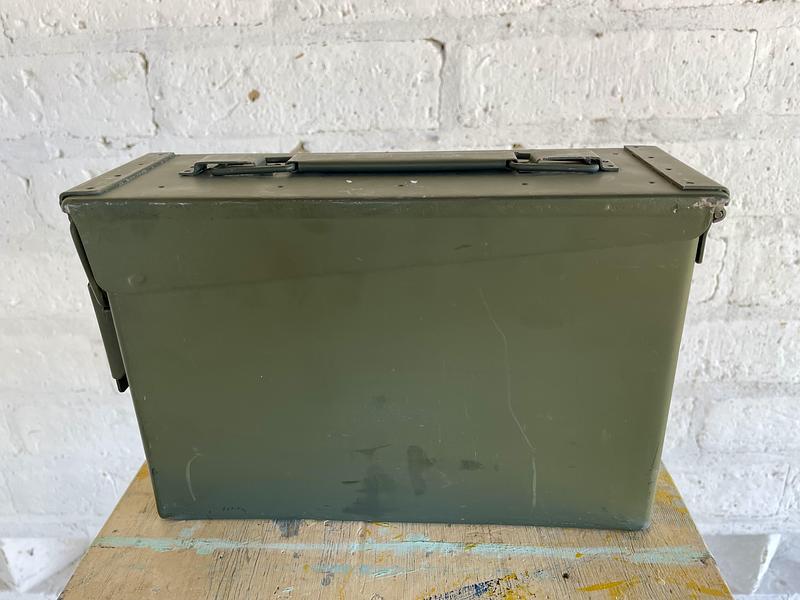 Caja hermética de metal extrafuerte elaborada por Winchester en USA. Utilizada para guardar munición.