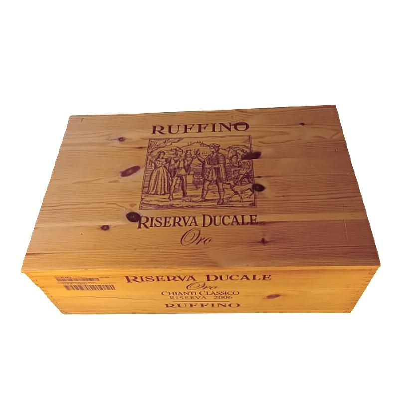 Caja de madera italiana de la Toscana, Rufino producido en la colinas del Chianti con denominación de origen controlado. La caja se