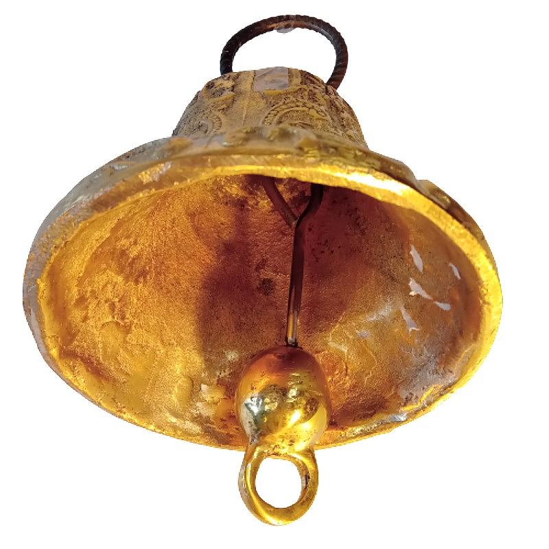 Campana elaborada por artesanos boyacenses con procedimientos coloniales heredados de España producida en bronce a partir de la aleación de cobre y estaño; en propoorción de 70% y 30%.