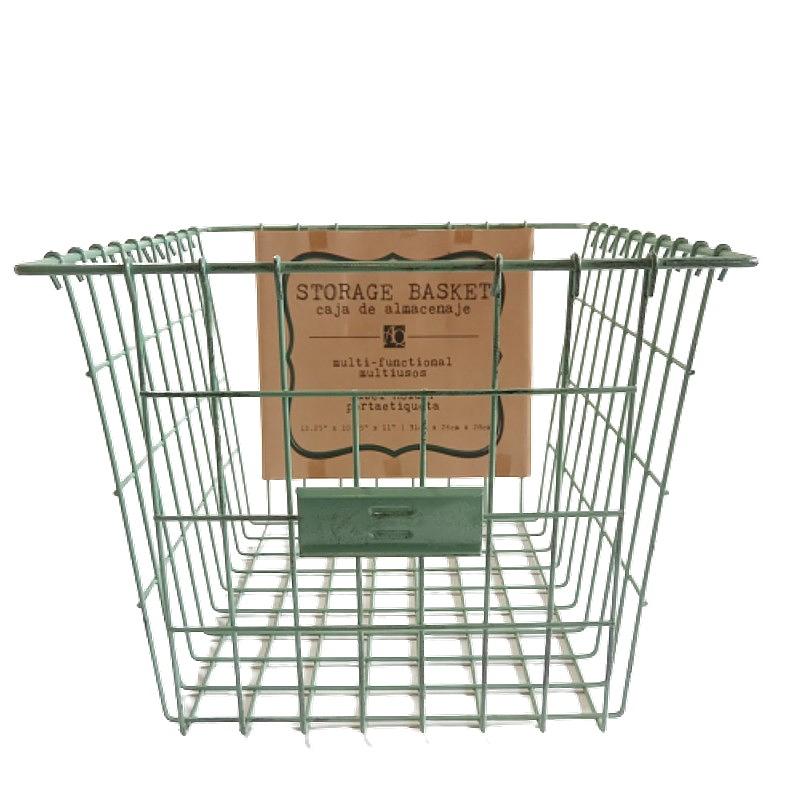 Elaborada en alambre, en la parte delantera tiene un espacio para poner el tiquete de inventario, recubierta en pintura horneda y acabado desgastado.