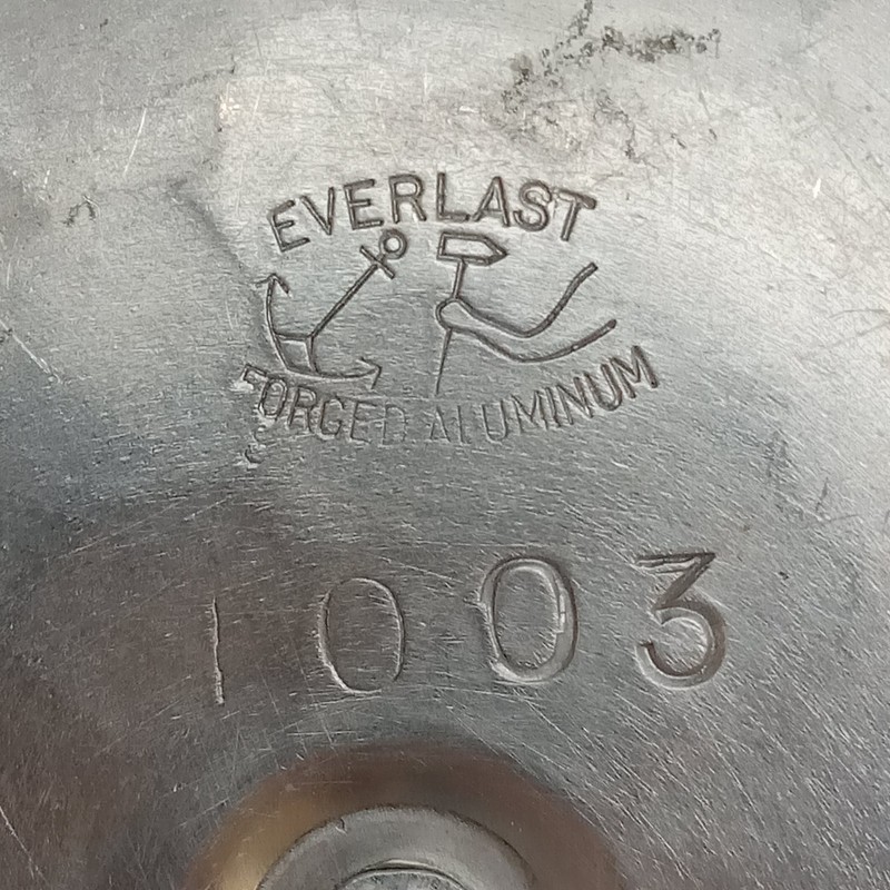 Candelero vintage en aluminio, la base tiene el sello EVERLAST FORCED ALUMINIUM