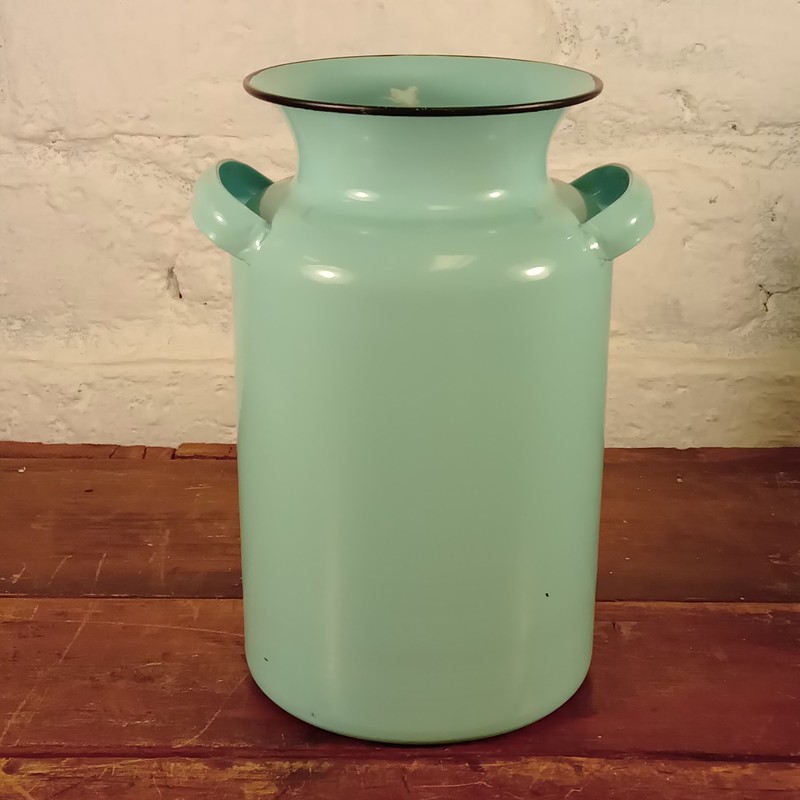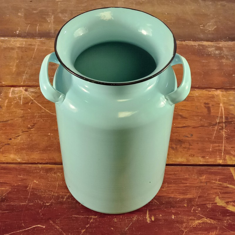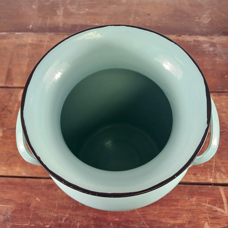 Cantina metálica esmaltada decorada en verde menta.