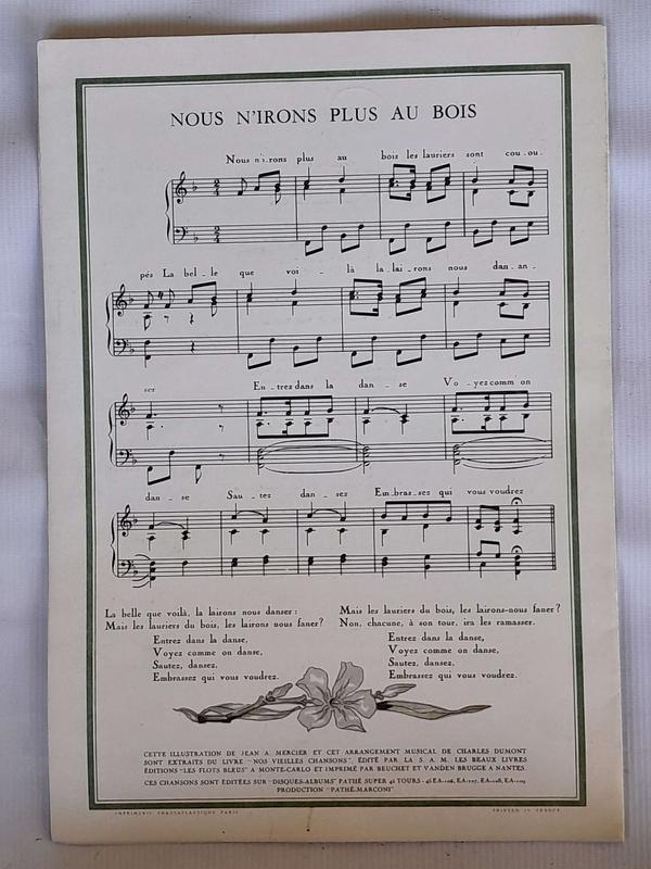 En la contraportada tiene las notas de la ronda infantil de origen francés " Nous N´irons Plus Au Bois"