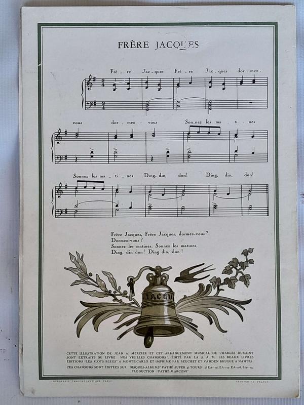 En la contraportada tiene las notas de la clásica canción infantil de origen francés " Frére Jacques".