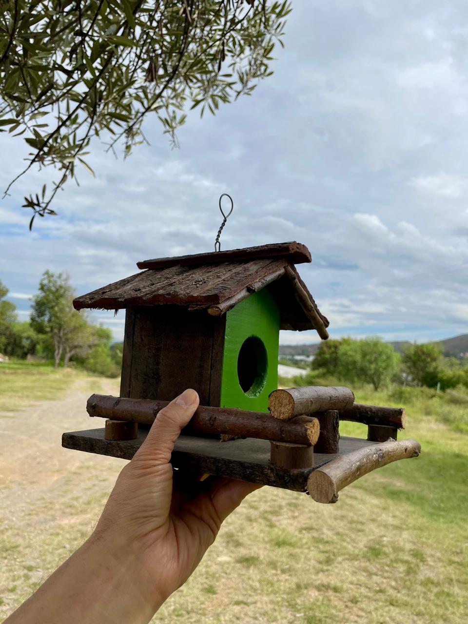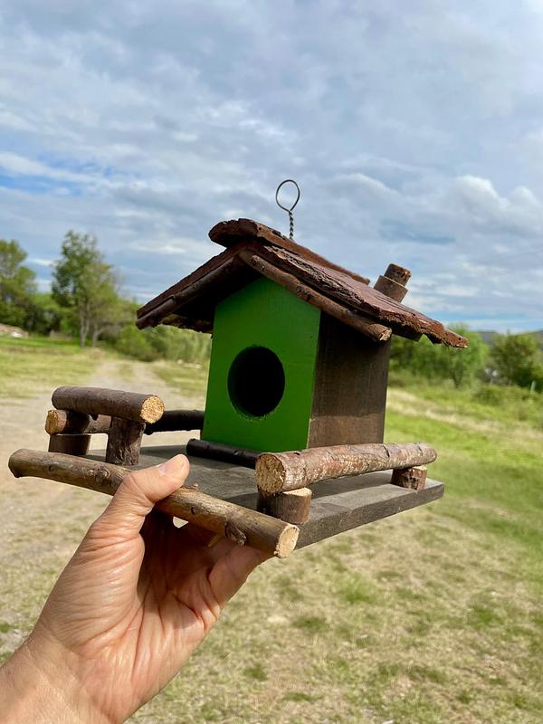 Casita de madera elaborada con trozos de madera recuperada. Para decorar el jardin y proporcionar un espacio para que los pájaros hagan su nido.