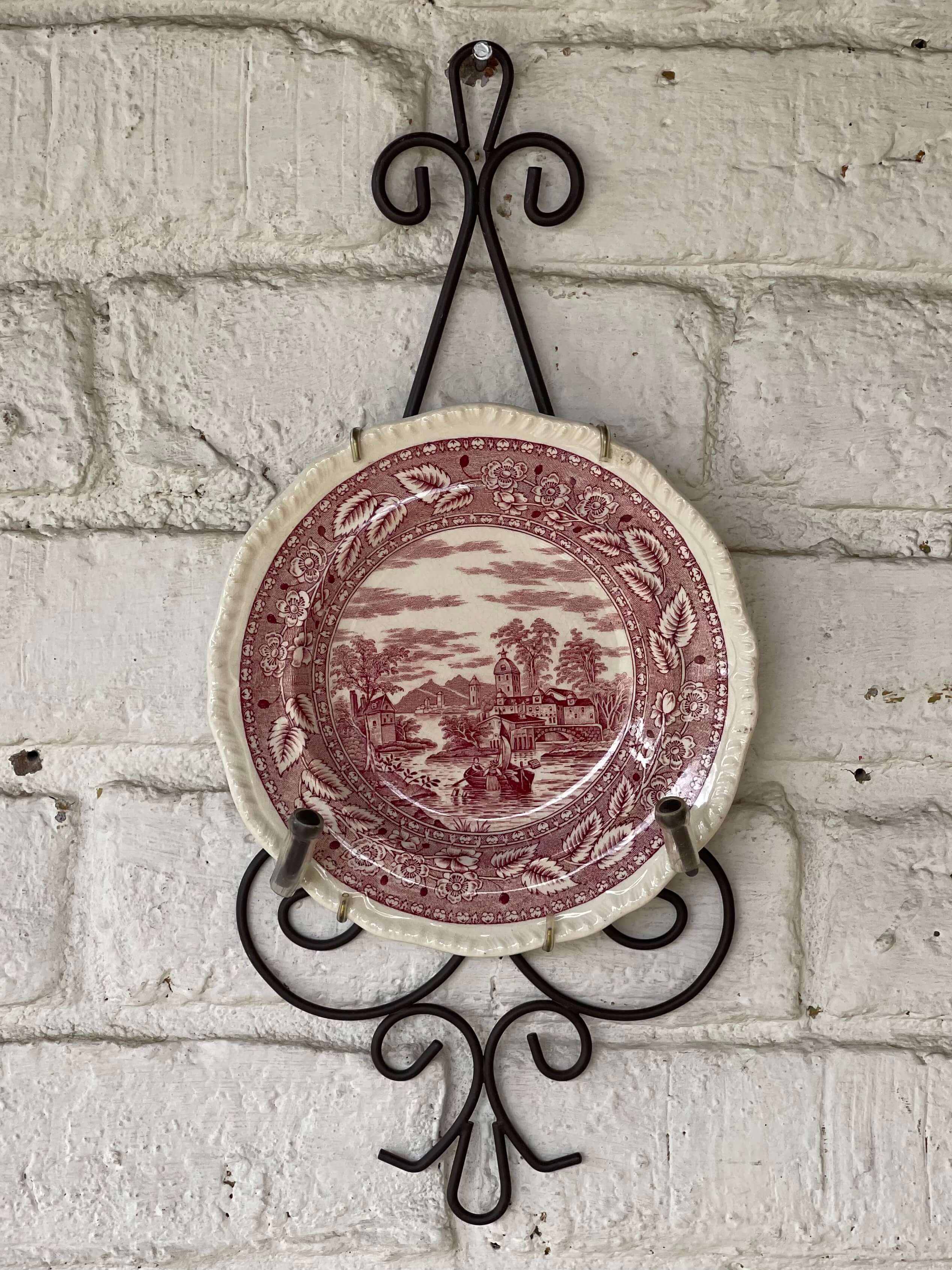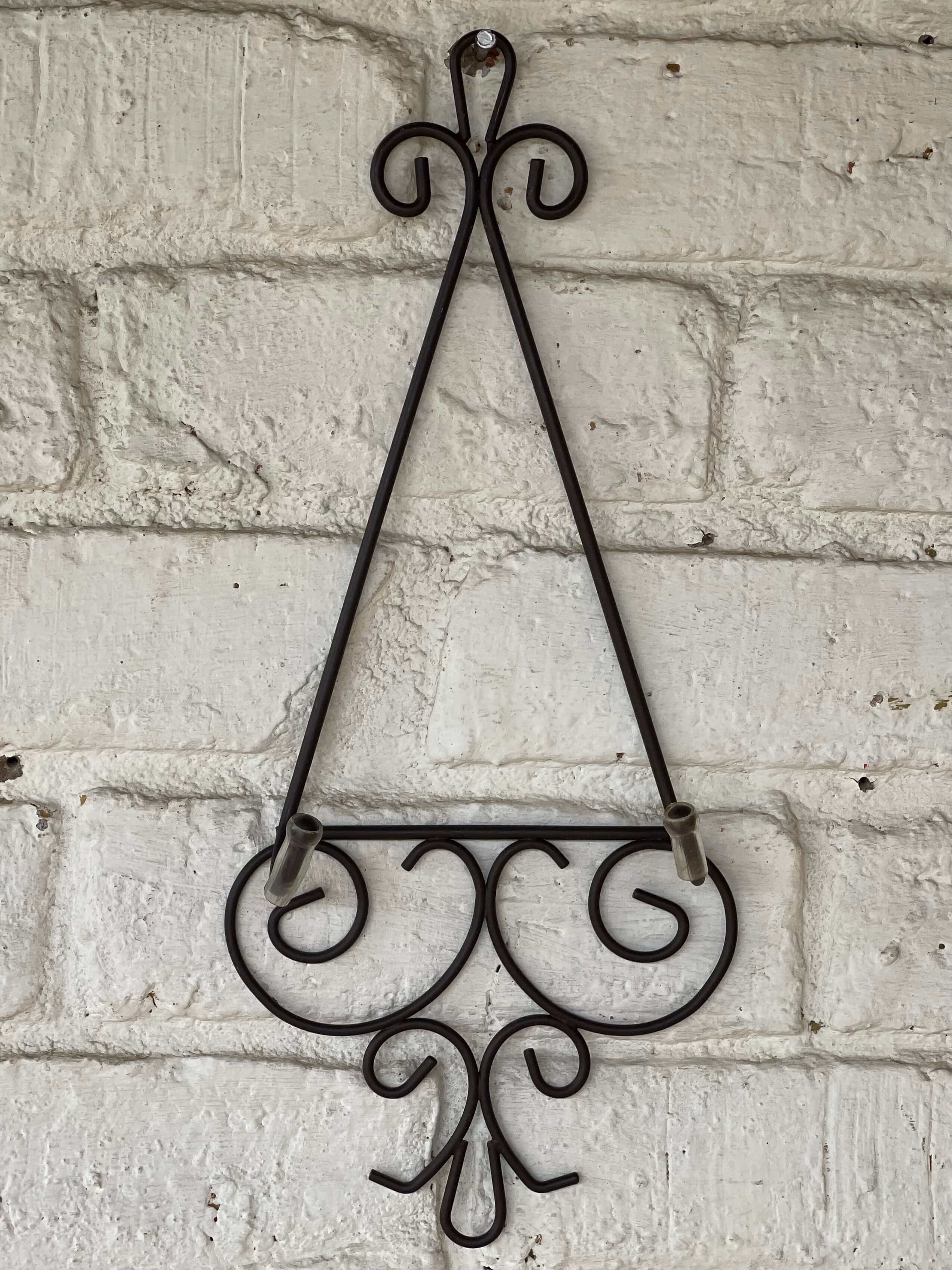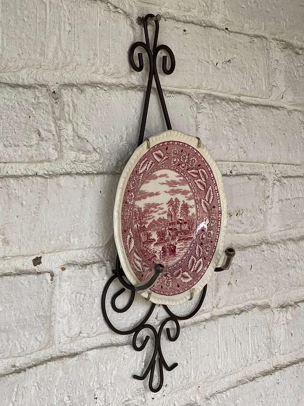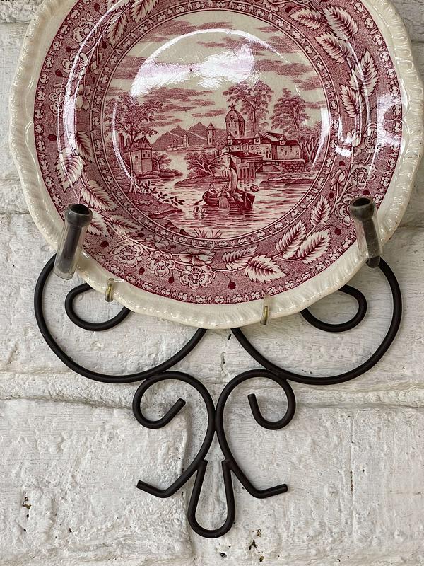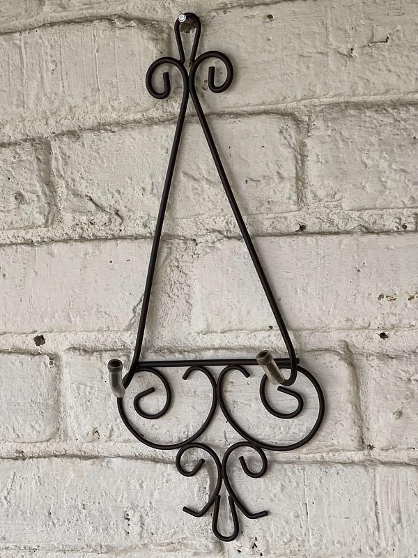 Soporte metálico para colgar un plato a la pared. No incluye el plato.