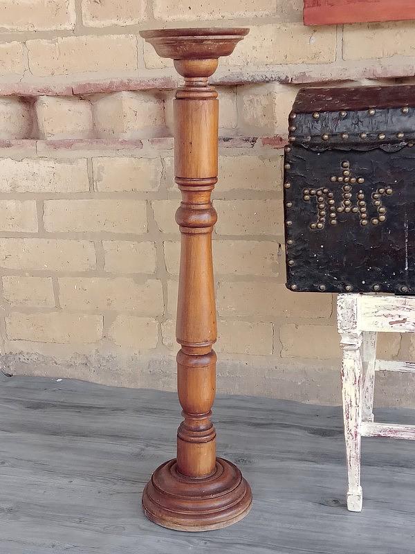 Columna en madera torneada, con señanles de uso, tiene desgastes en el color de la superficie.
