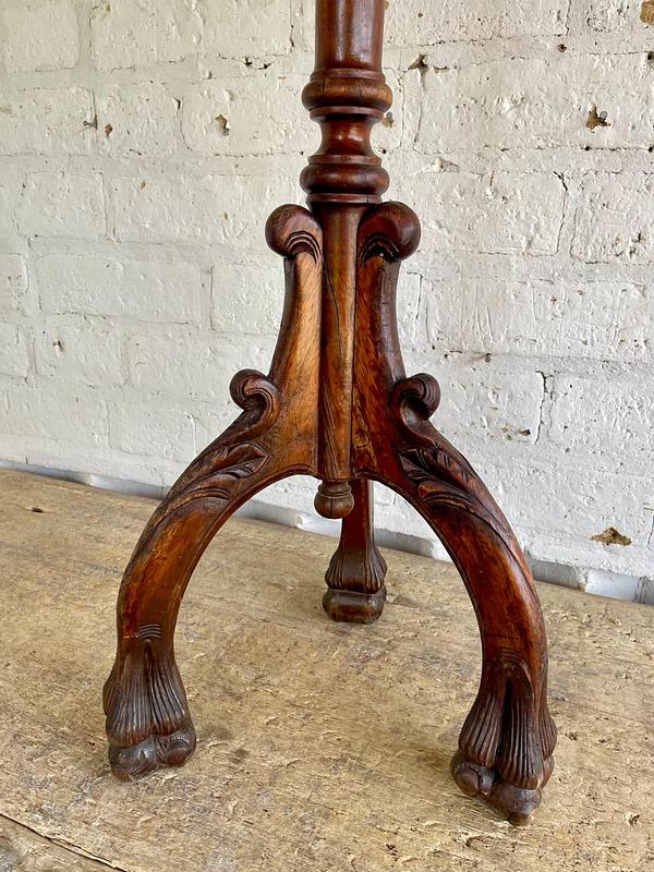 Mesa Columna Madera Tallada Y Granito - Colombia 1960