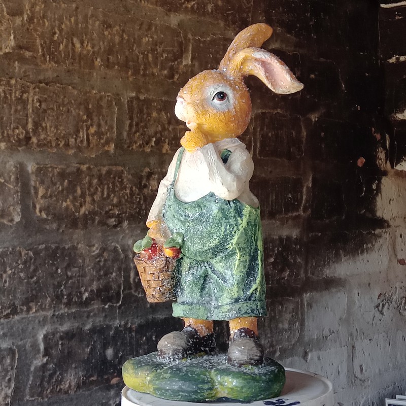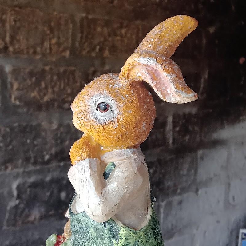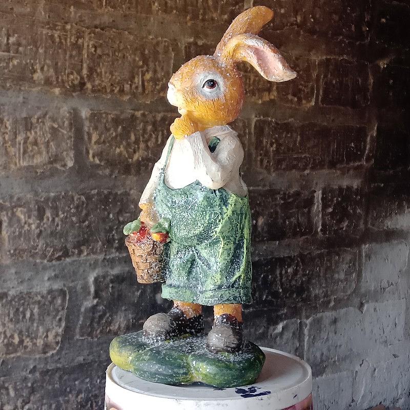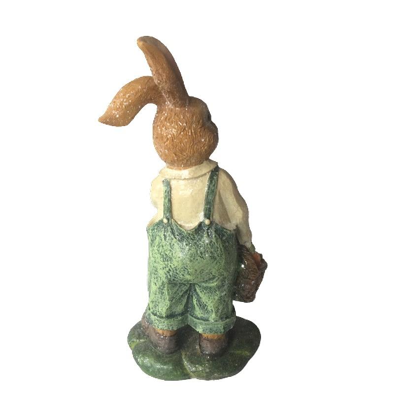 Conejo en la granja cosechando zanahorias en un canasto.