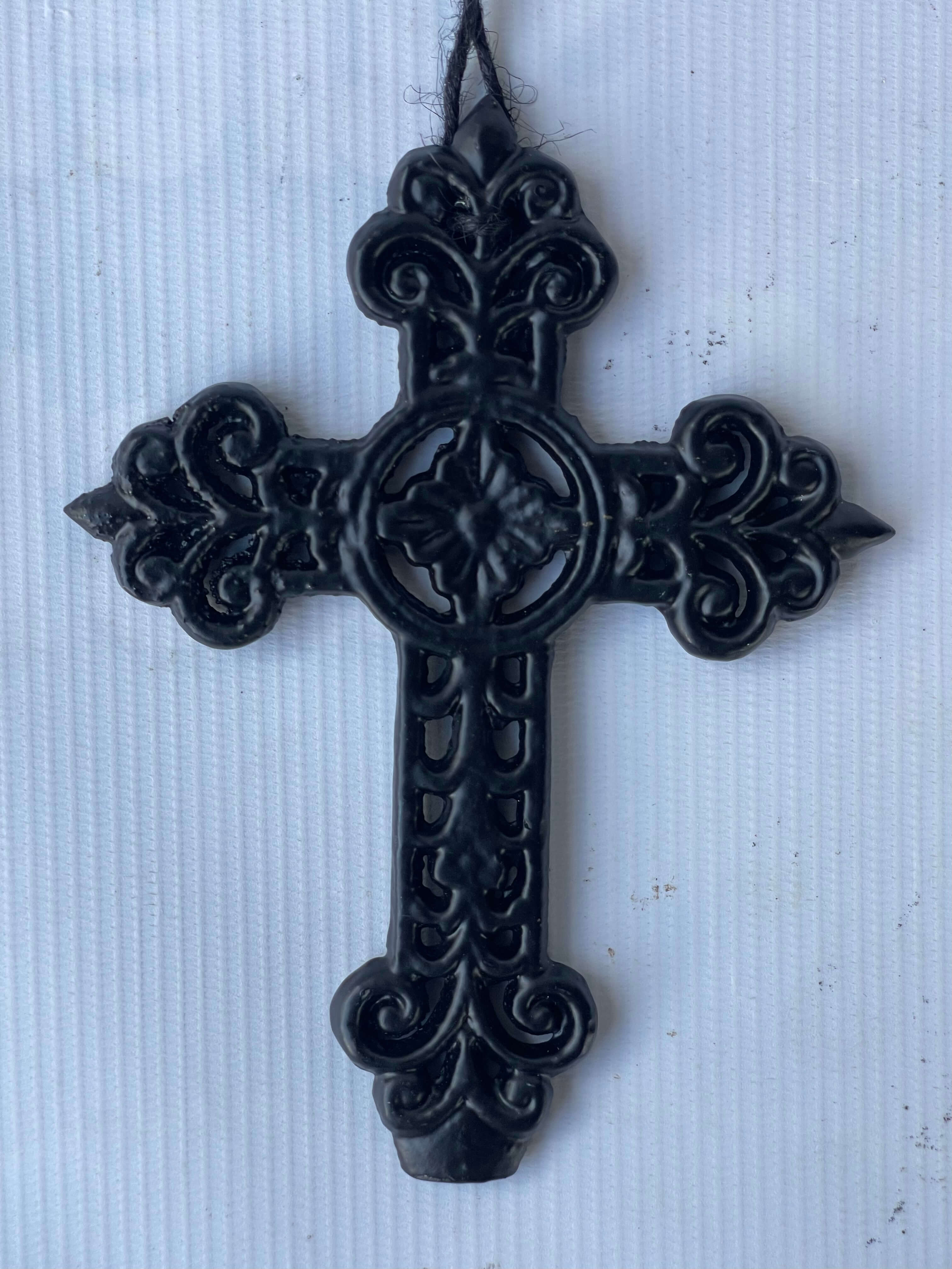 Cruz elaborada en hierro fundido decorada con arabescos por ambas caras.