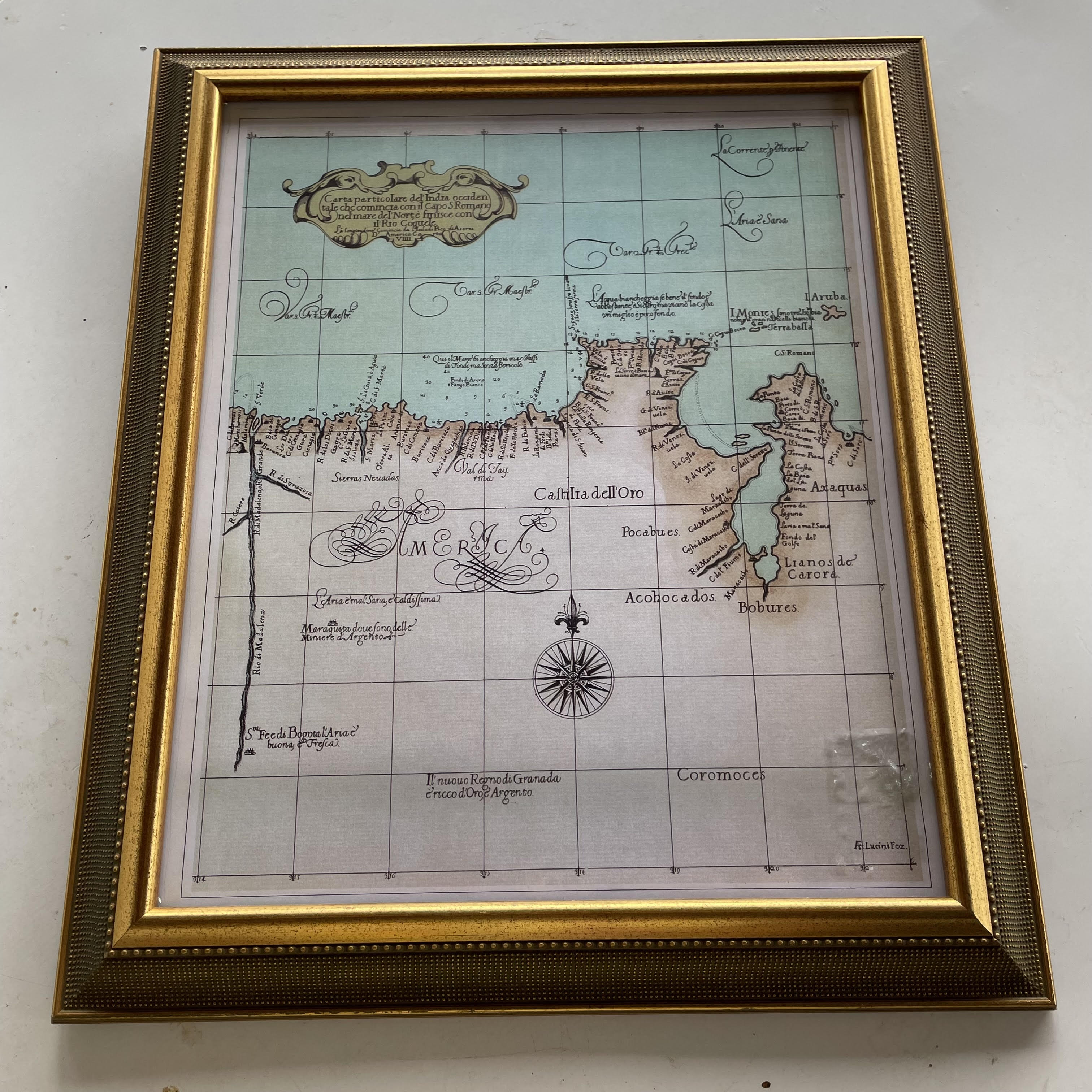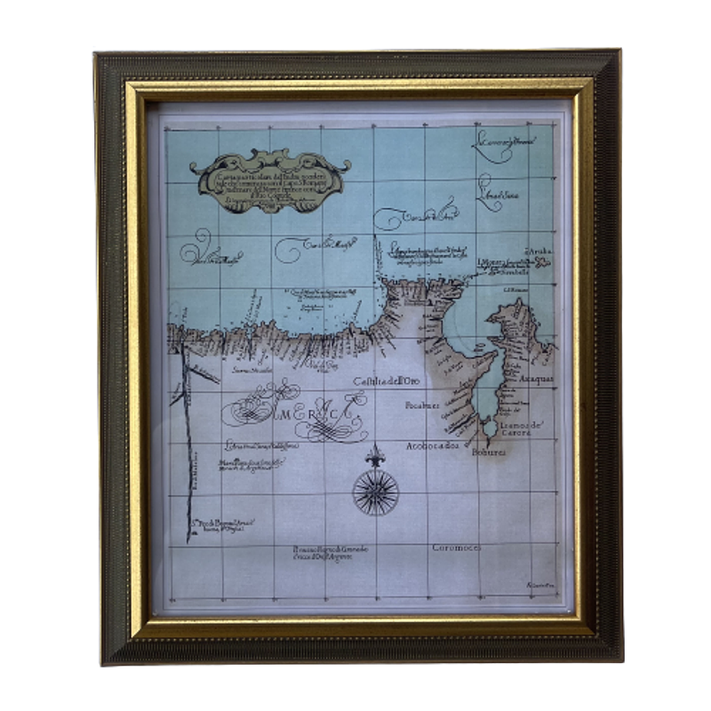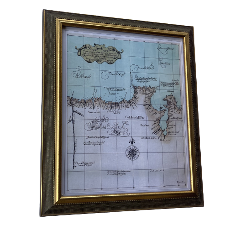 La lámina del mapa se encuentra en buen estado enmarcada en moldura de poliuretano y vidrio.