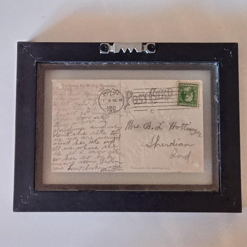 La postal se encuentra en buen estado. Enmarcada con moldura retro de poliuretano y doble vidrio que permite ser observada por ambas caras.