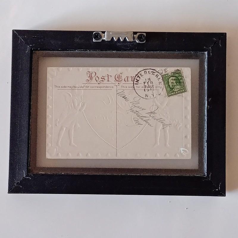 La postal se encuentra en buen estado. Enmarcada con moldura retro de poliuretano y doble vidrio que permite ser observada por ambas caras.