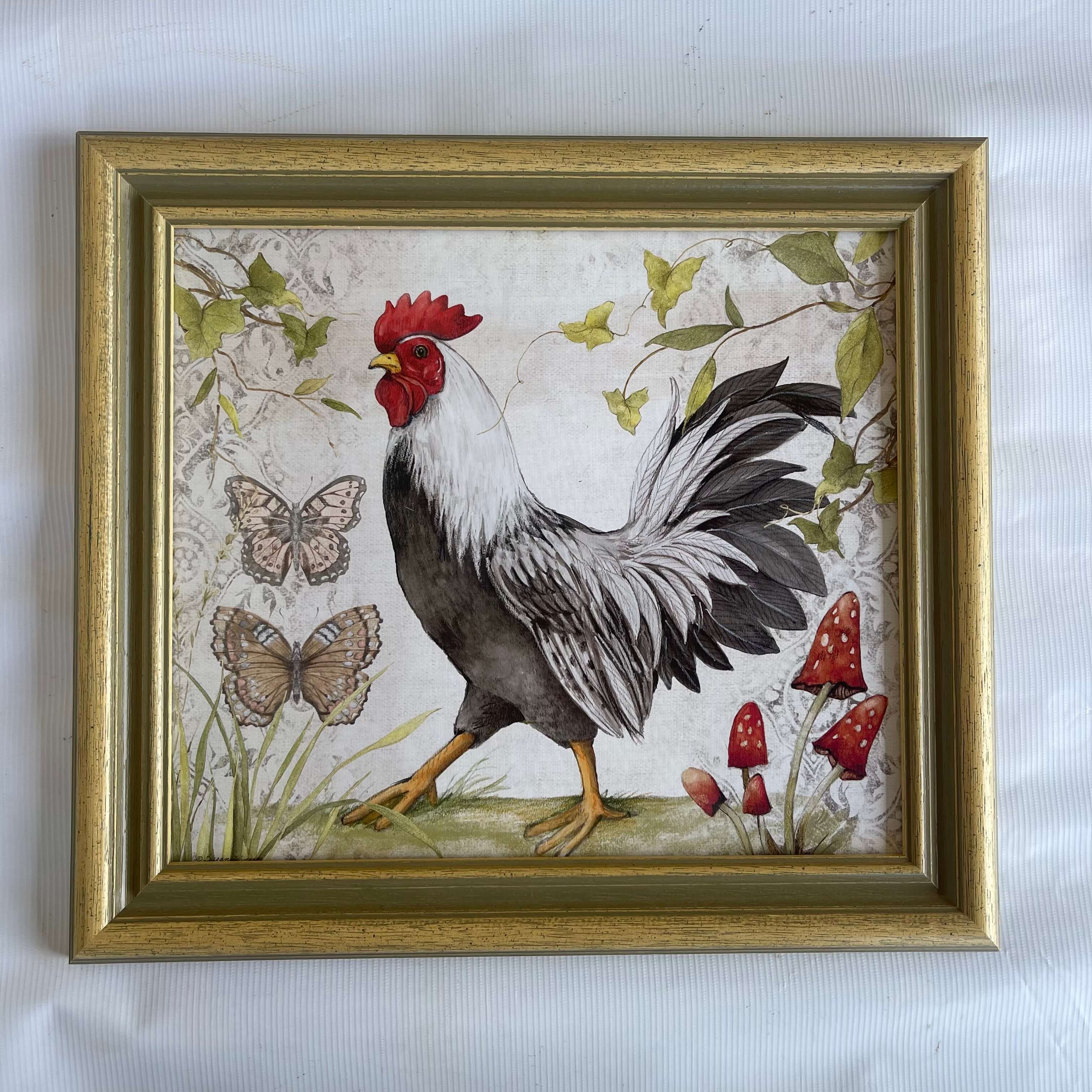 Cuadro enmarcado con moldura de madera rooster Susan Winget
