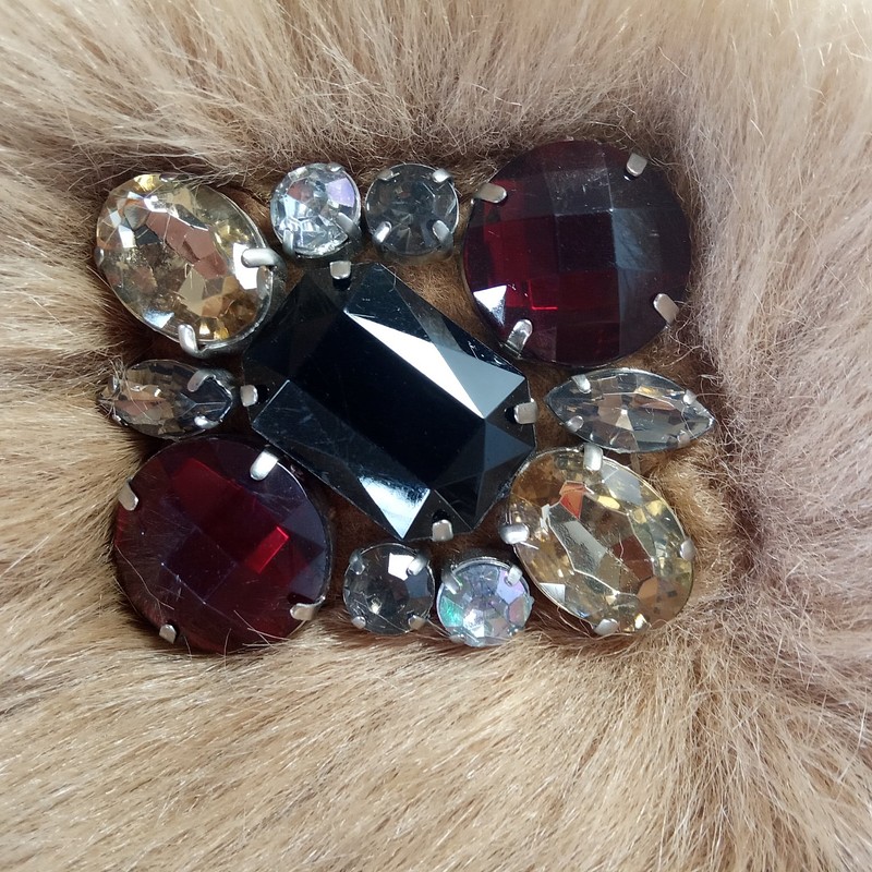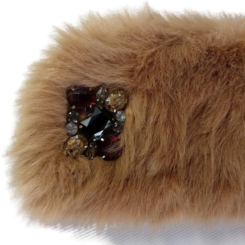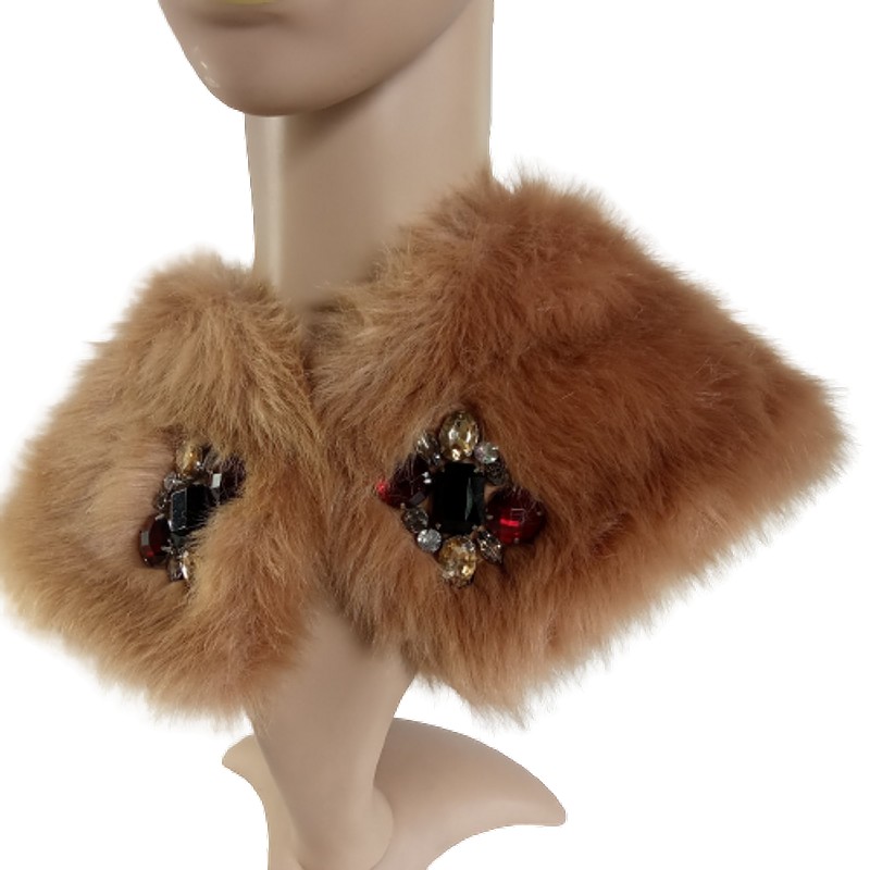 Cuello en piel acrílica, con apariencia de una bufanda en piel de marta. Tiene broches retro en los extemos. Elaborado por Inditex para ZARA ACCESORIOS.