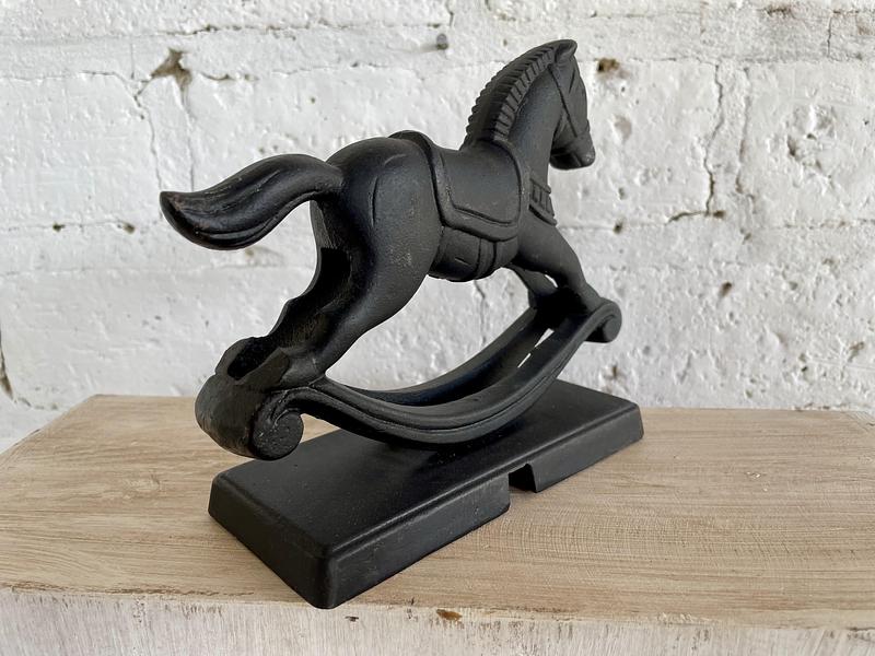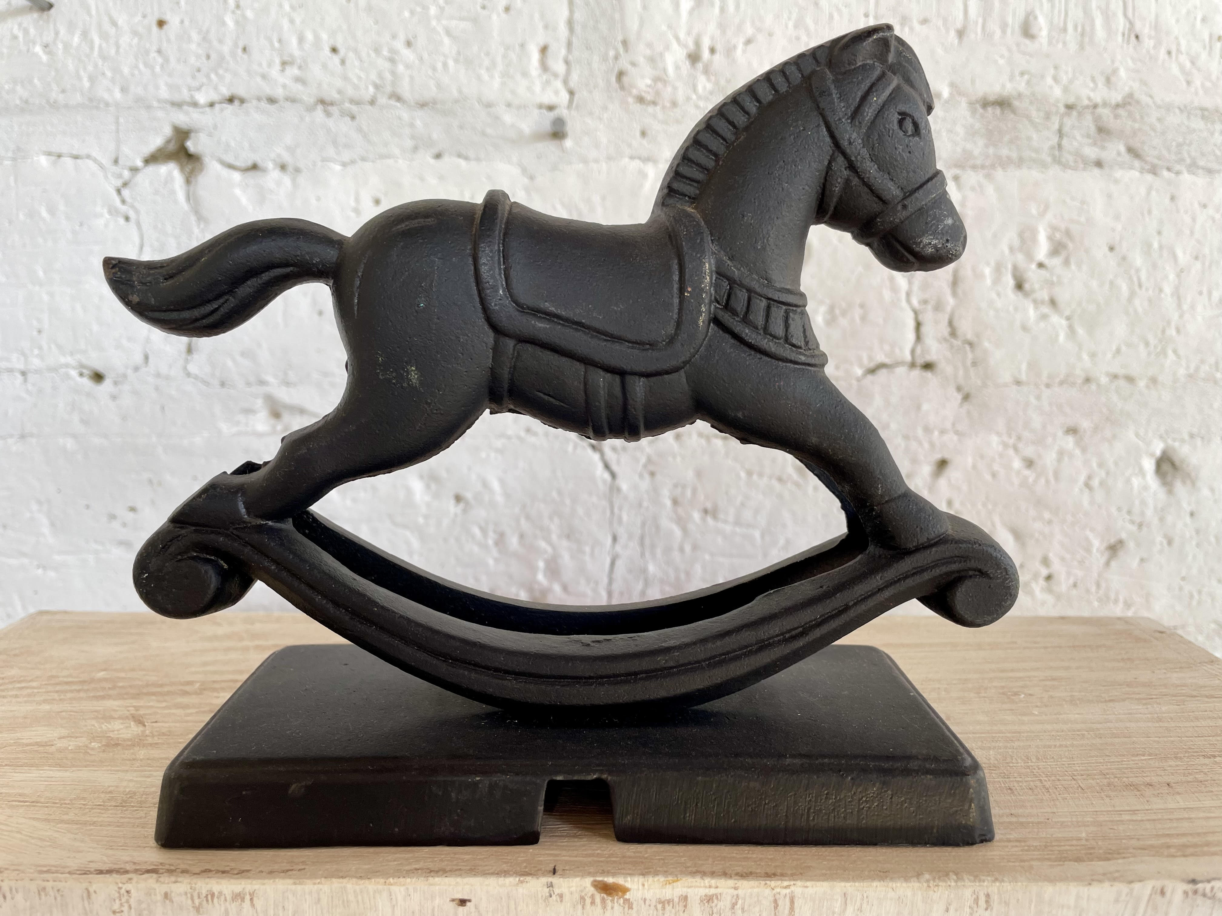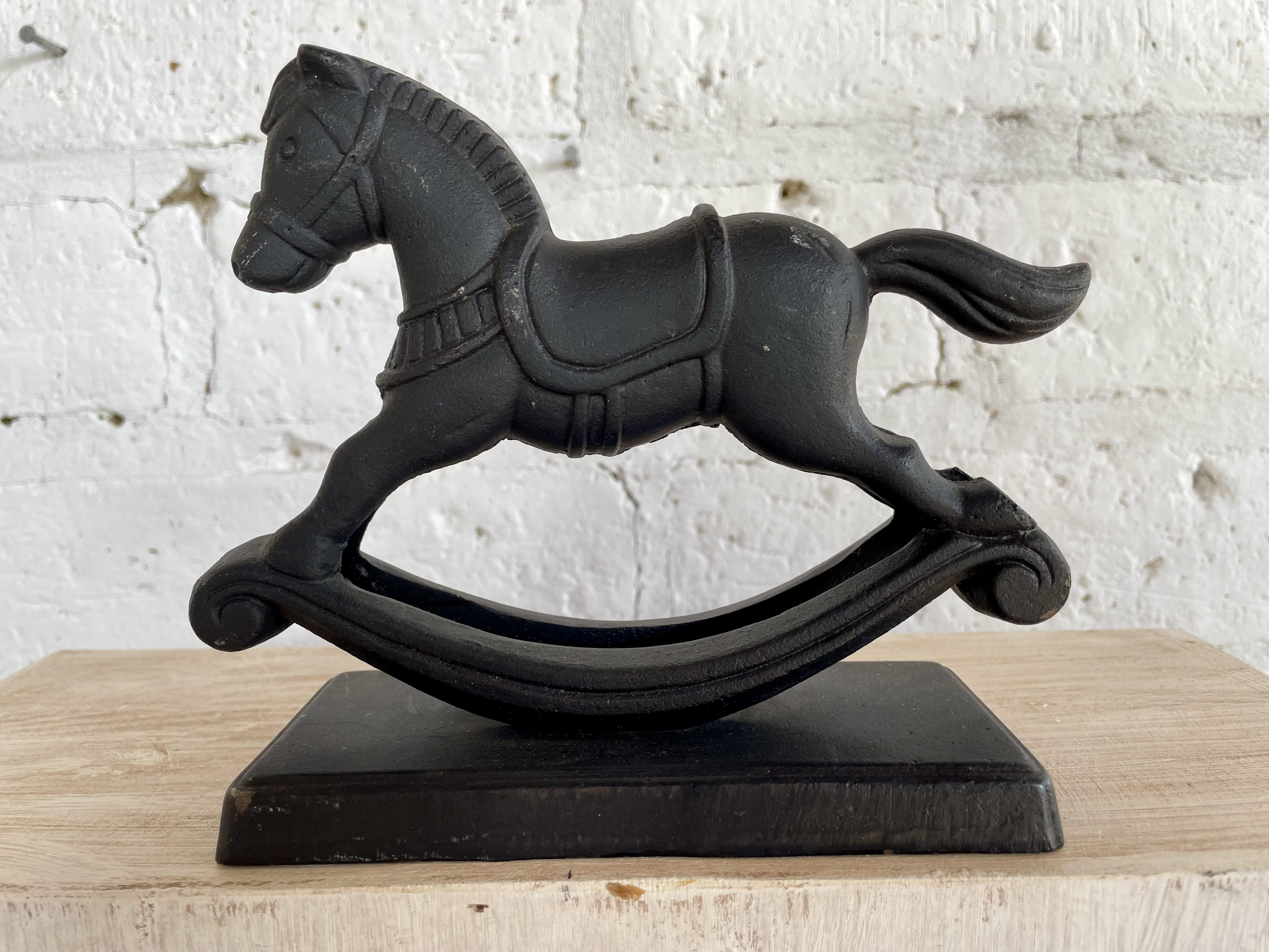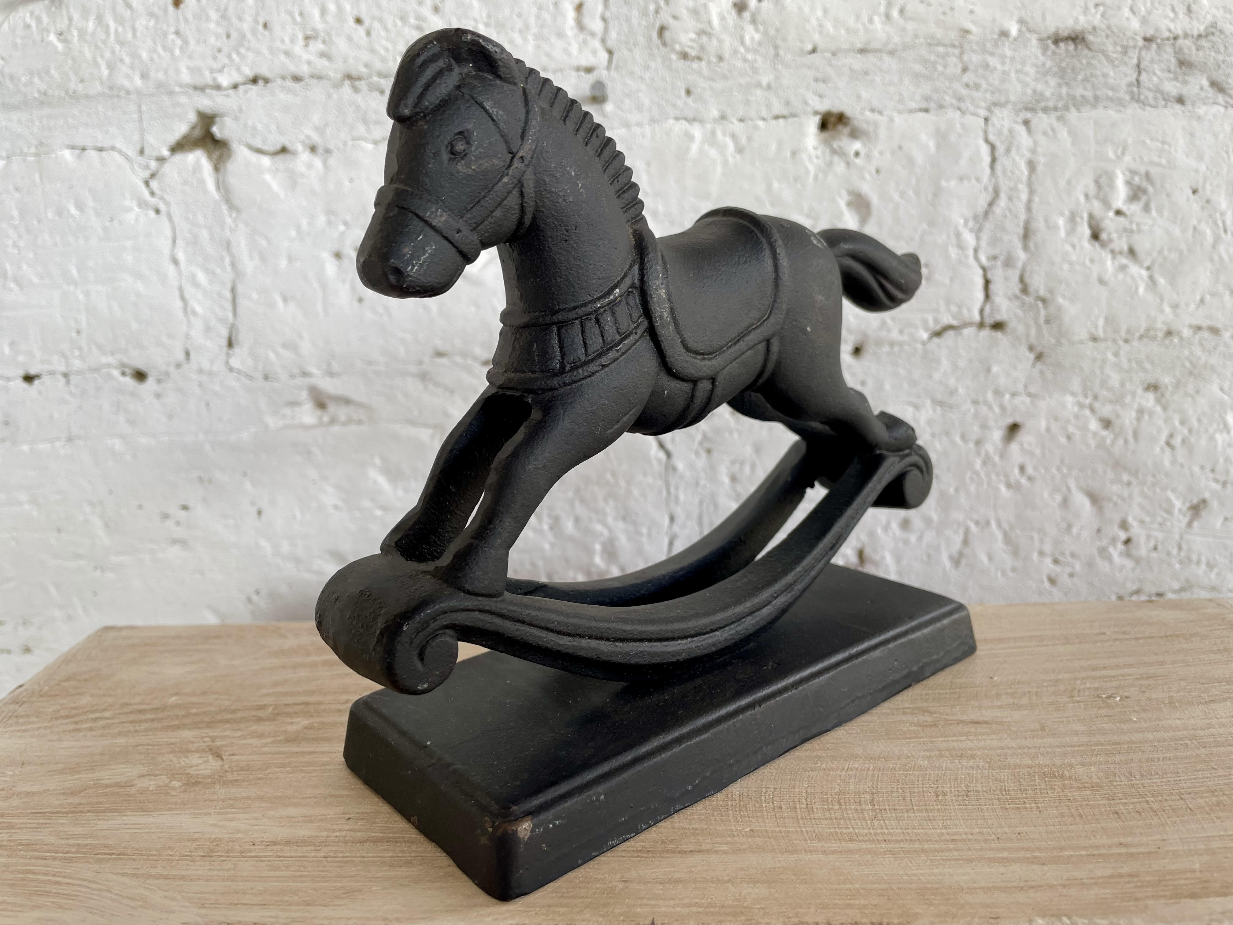 Figura de caballo banlancín en hierro fundido.