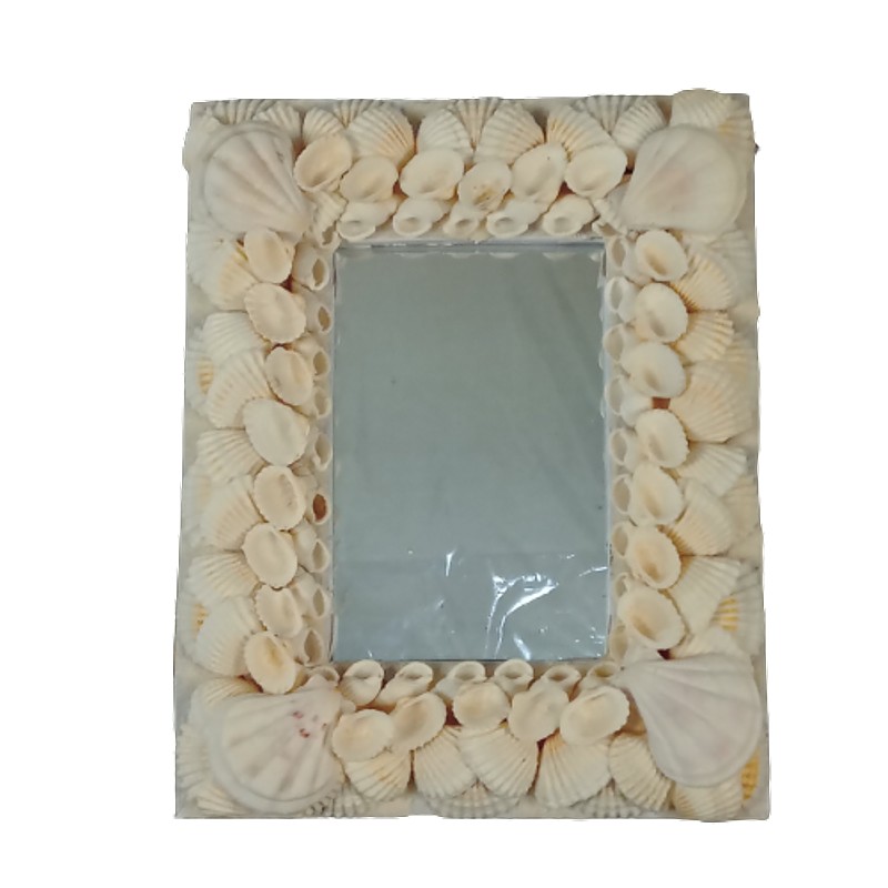 Espejo con el marco decorado con conchas marinas.