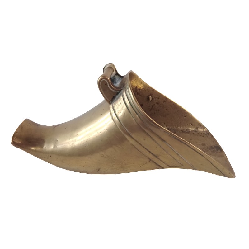 Estribo de montar a caballo en bronce de principios del S. XX. Tiene abolladuras y desgaste por el uso.