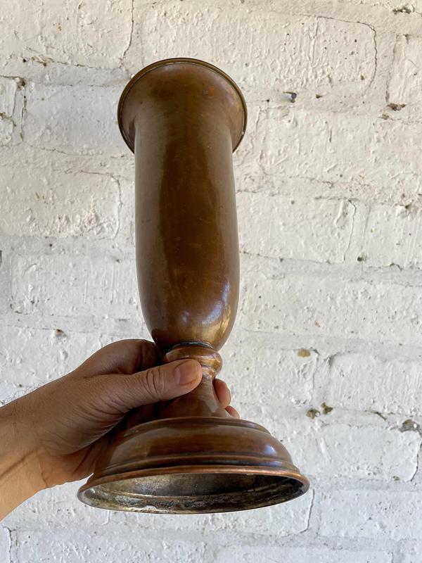 Florero cobre estilo trompeta - Alto 36 cm. Diámetro de la boca 13,5 cm. Diámetro de la base 12,5 cm.