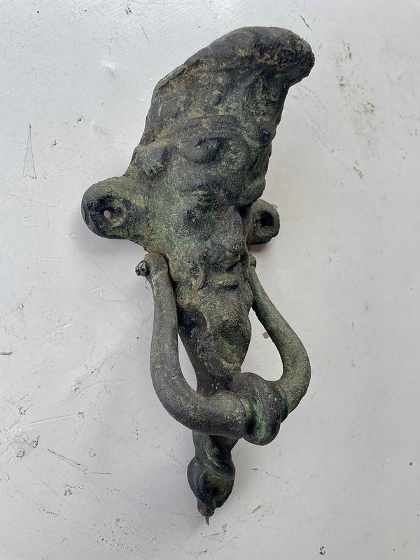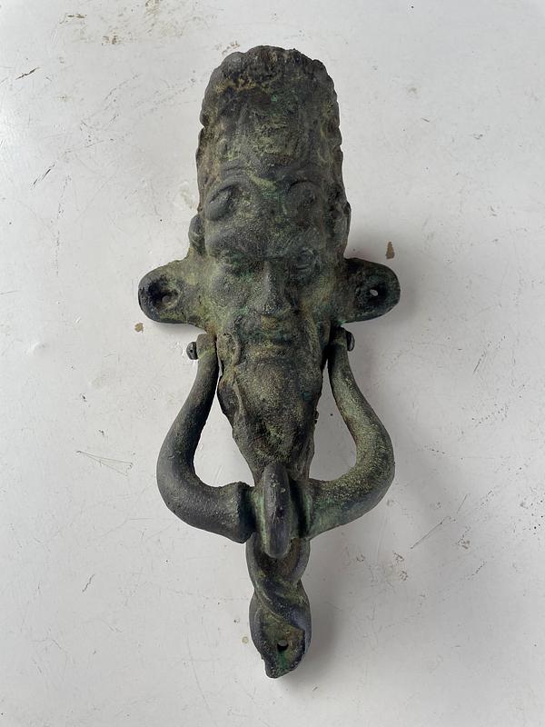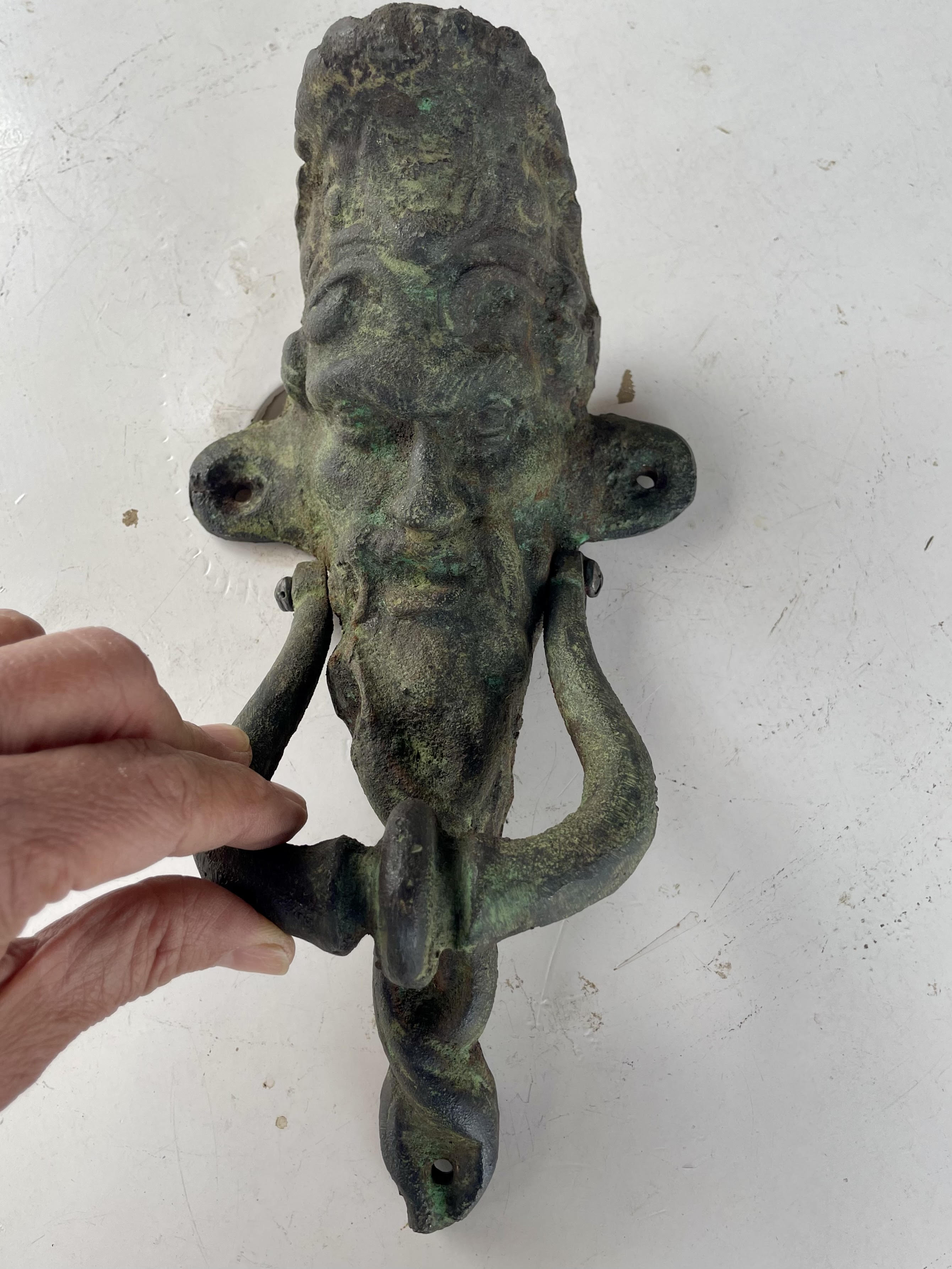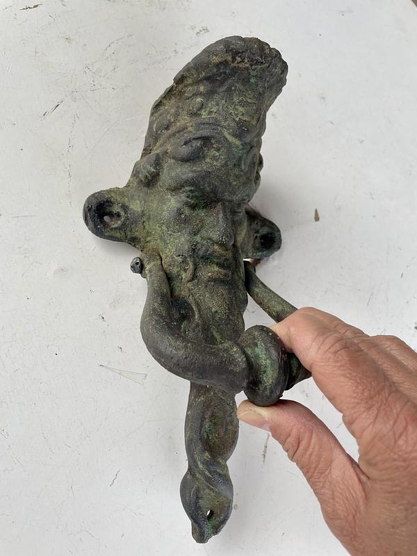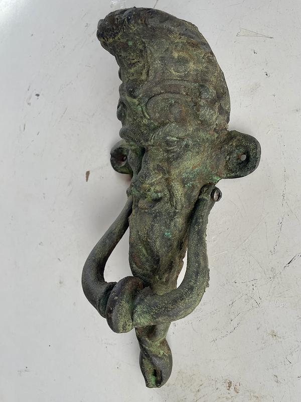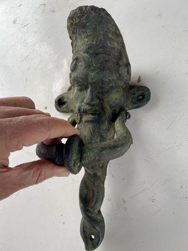 Aldaba de hierro fundido con la figura inspirada en el protagonista del cuento francés de Charles Perrault: "Barba Azul" (1965).