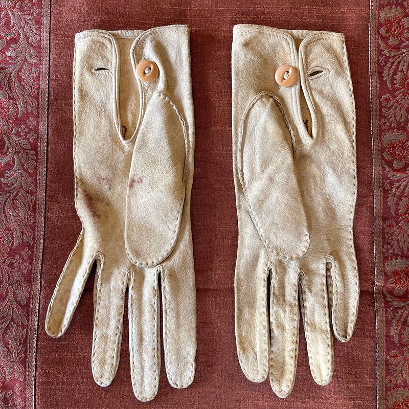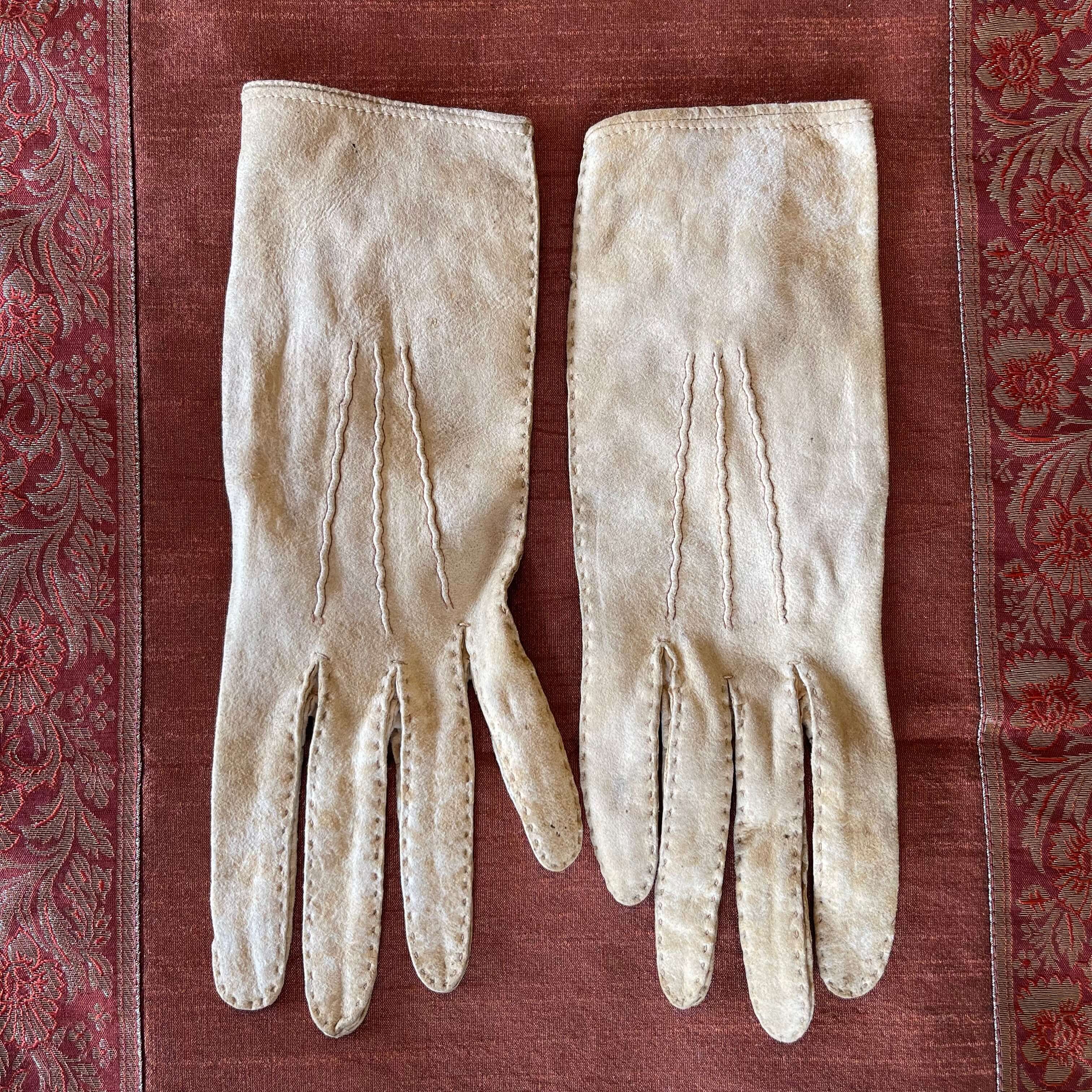Guantes de cabritilla para niño, el cuero se encuentran resecos y con manchas.