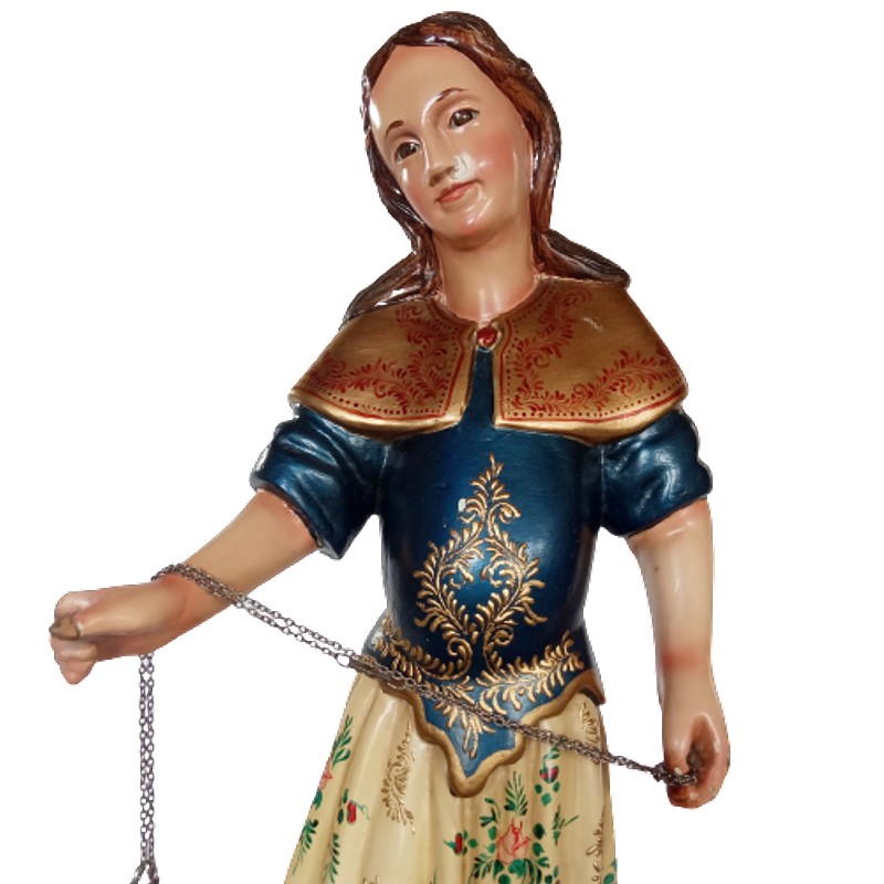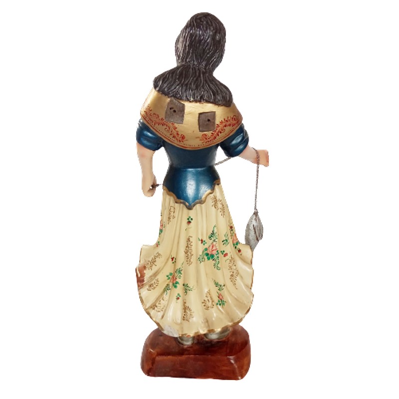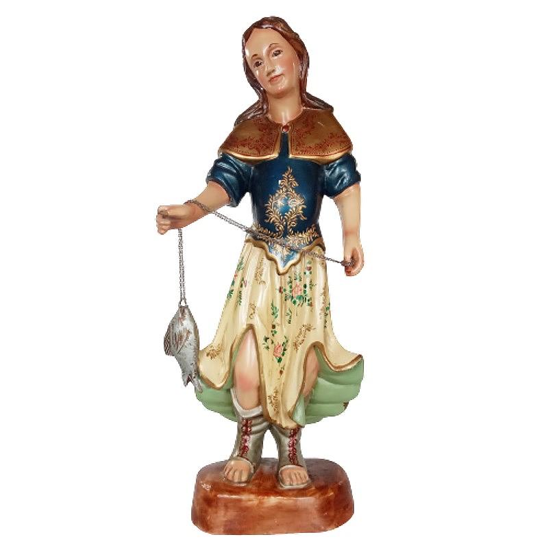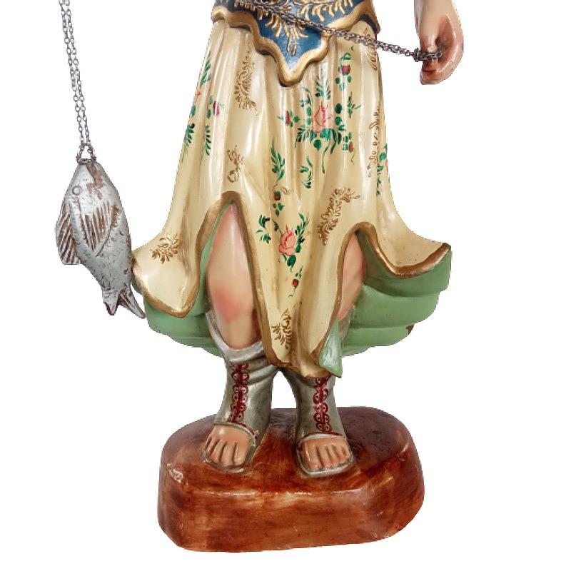 En madera tallada, ojos en cristal. Representa a San Rafael. Tiene dos dedos rotos y desgaste de la pintura de la nariz. Le faltan las alas.