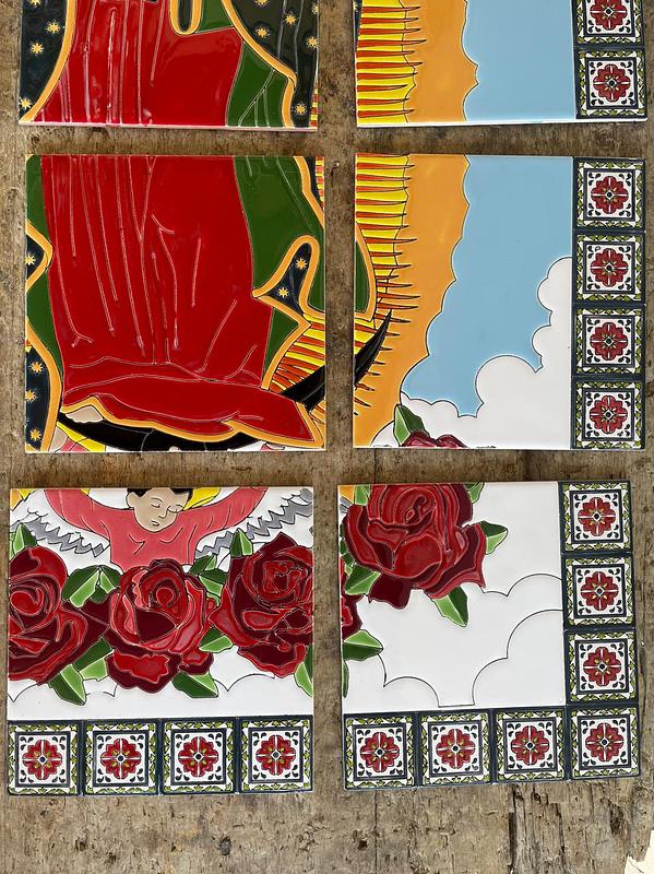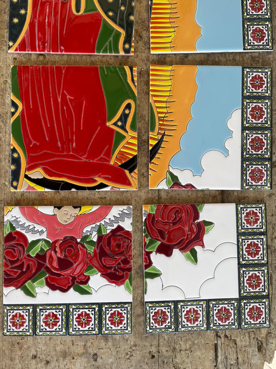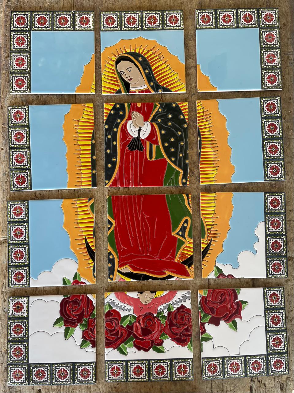 Imagen pintada a mano sobre baldosa y quemada a alta temperatura. Apta para exteriores. Con barnices de calidad para garantizar su exposición a la intemperie, sol, lluvia, etc., sin desteñirse. Colores garantizados de por vida. Ideal para empotrar en la pared, decorar fachadas y portales. Elaborada en 12 baldosas de 20 x 20 cm cada una.