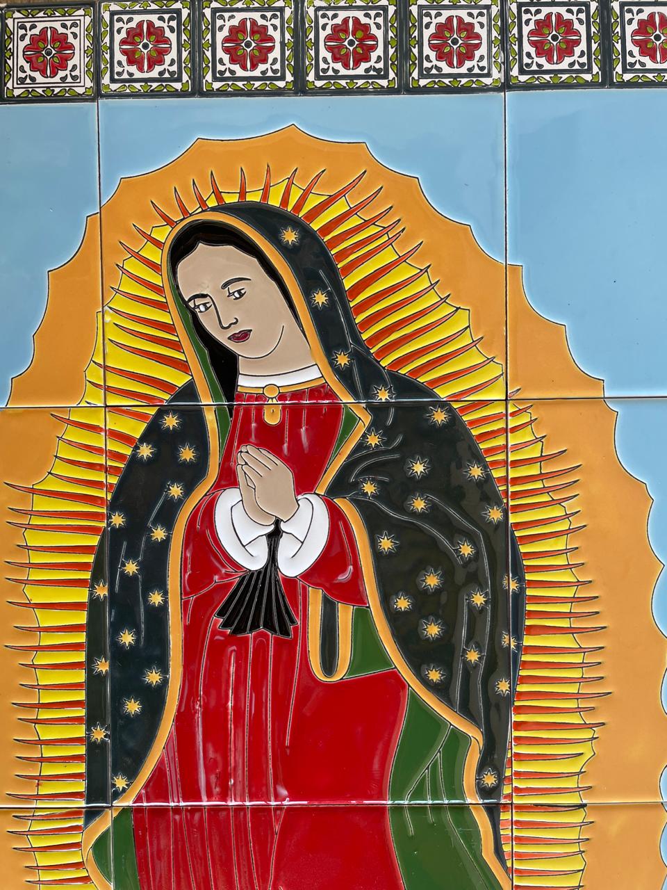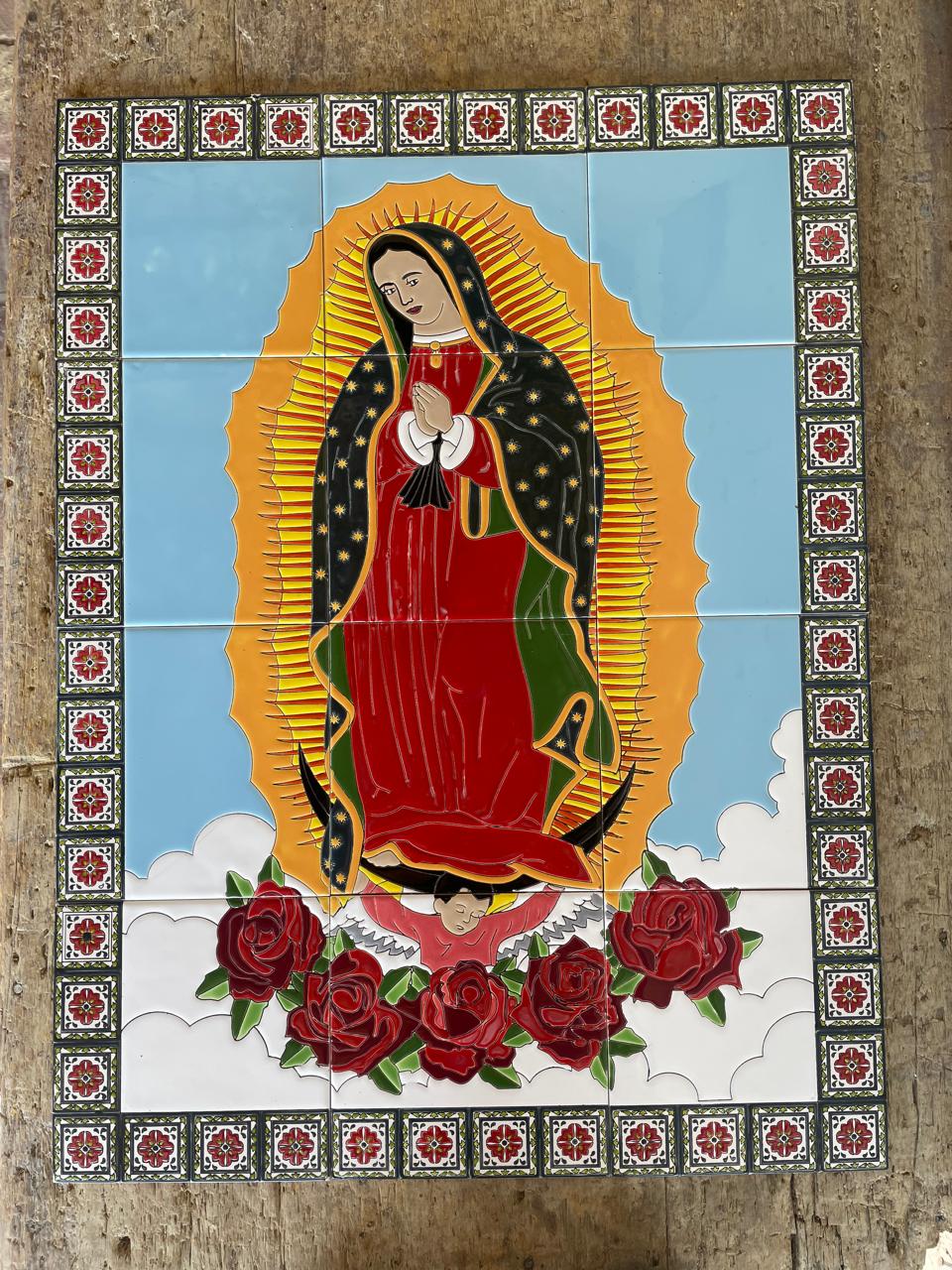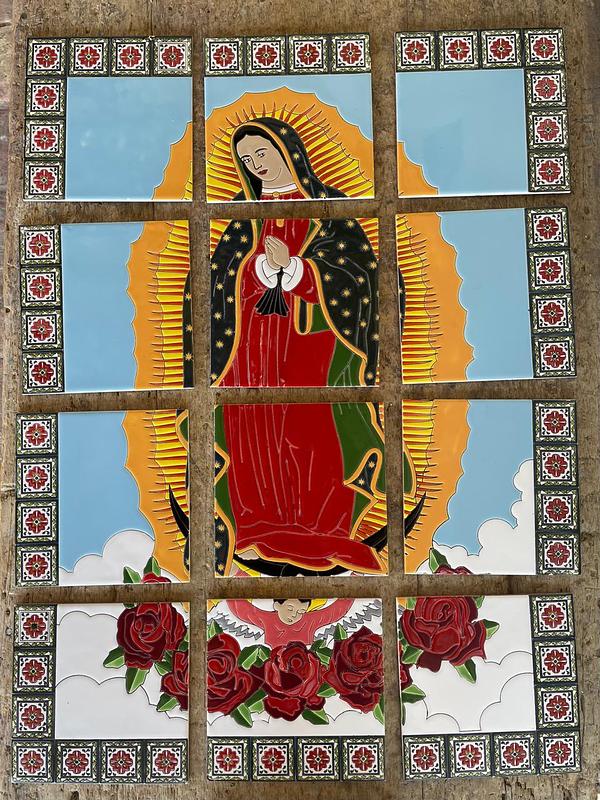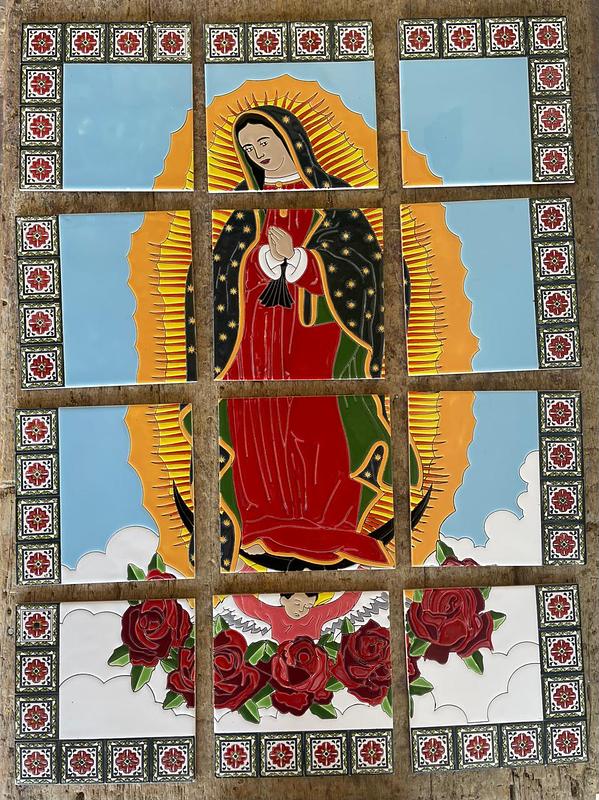Imagen pintada a mano sobre baldosa y quemada a alta temperatura. Apta para exteriores. Con barnices de calidad para garantizar su exposición a la intemperie, sol, lluvia, etc., sin desteñirse. Colores garantizados de por vida. Ideal para empotrar en la pared, decorar fachadas y portales. Elaborada en 12 baldosas de 20 x 20 cm cada una.