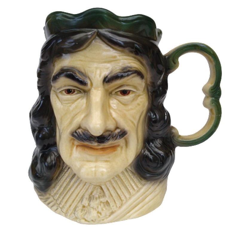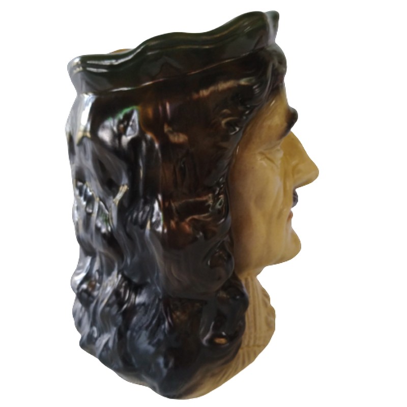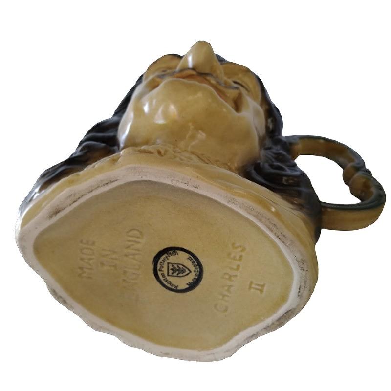 Jarra Vintage en porcelana producida en Inglaterra por Kingston Pottery Hull entre 1964 y 1984, decorada con la cabeza del Rey Carlos II de Inglaterra entre 1660 y 1685, primer monarca católico del Reino Unido.