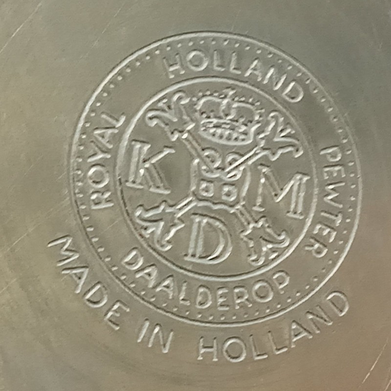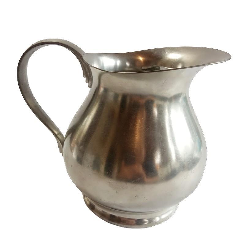 Jarra en acero inoxidable, tiene trampa para hielo en el pico. Producida por la firma holandesa Royal Pewter Daalderop en los años cincuenta.