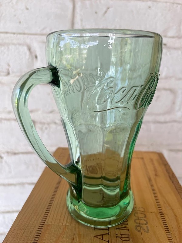 Antiguo jarro de la marca Coca Cola en vidrio grueso artesanal.
