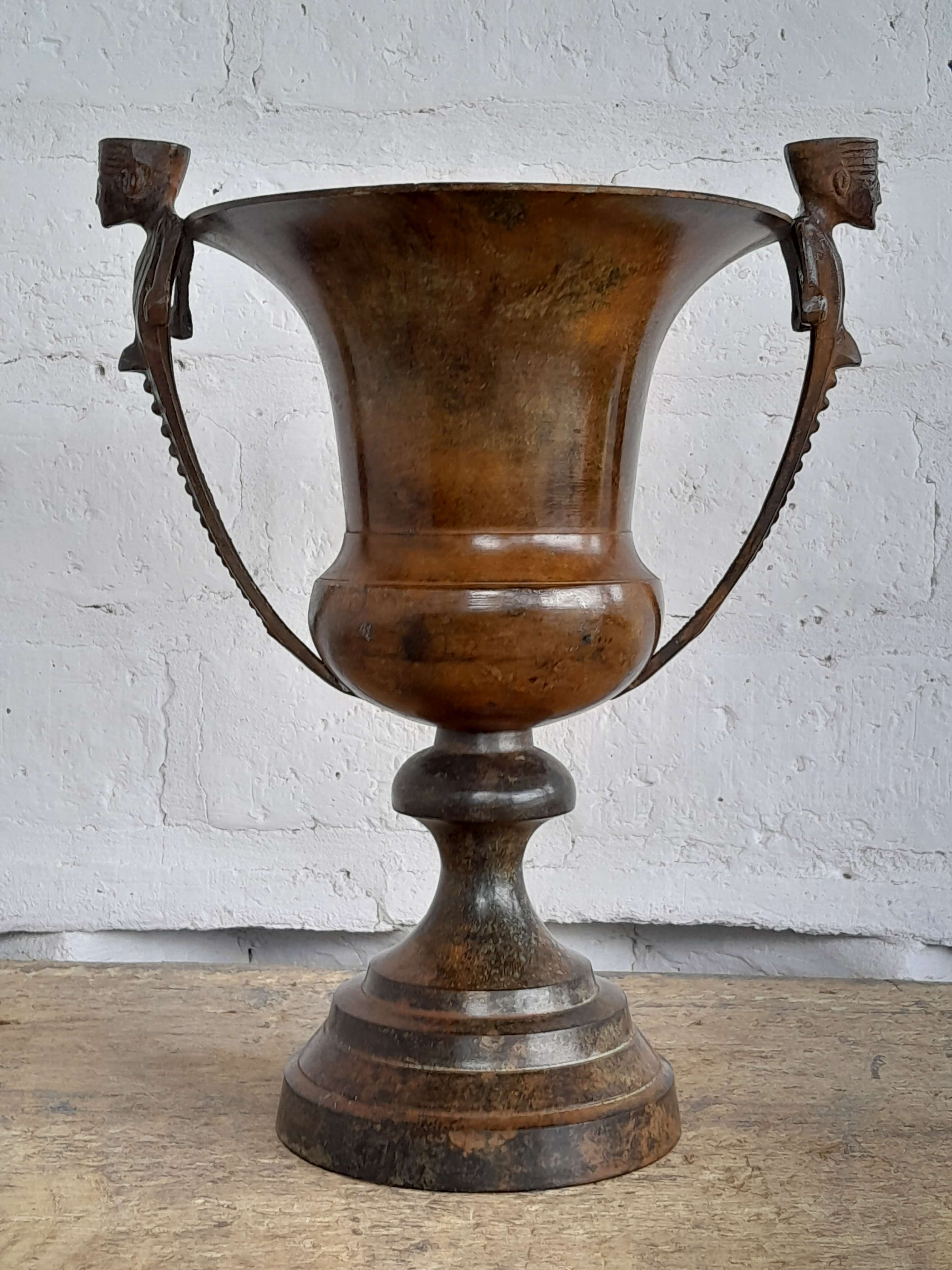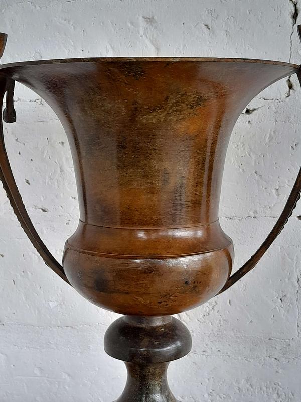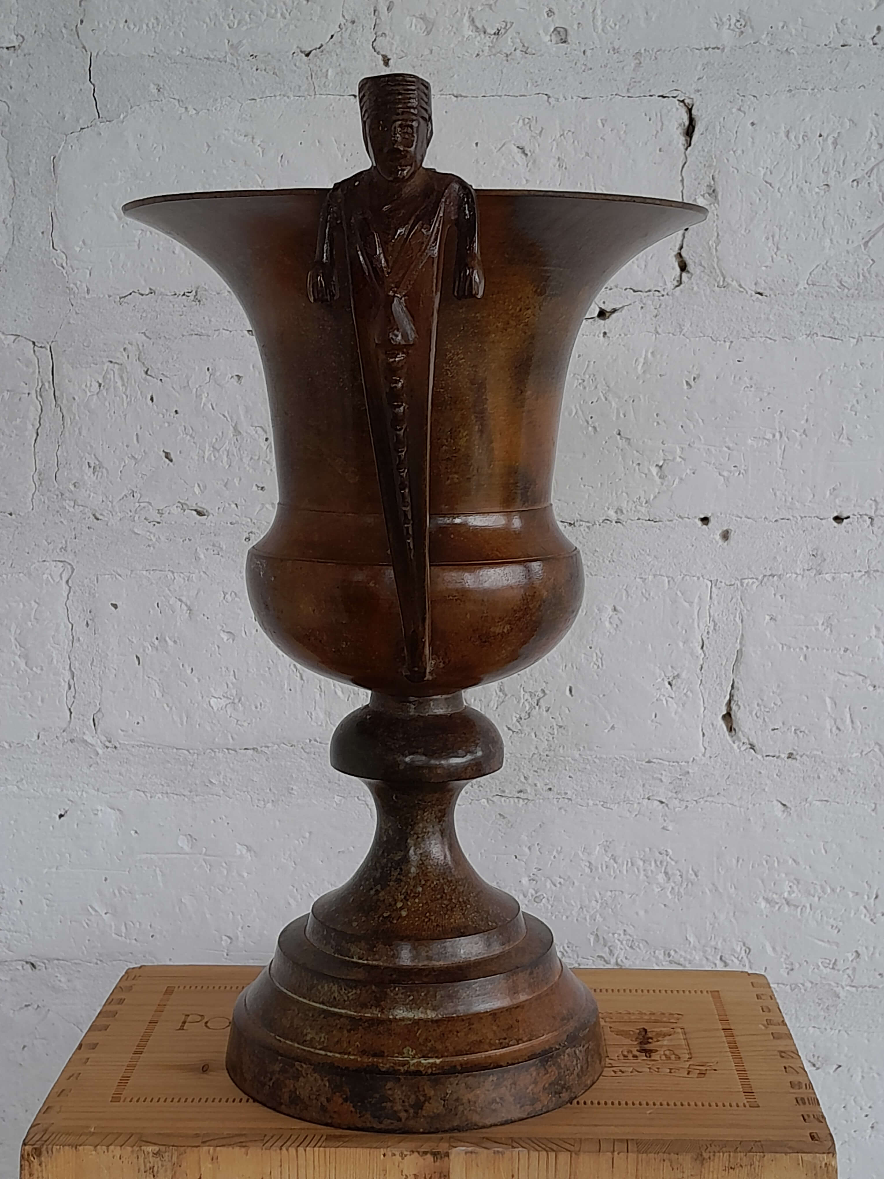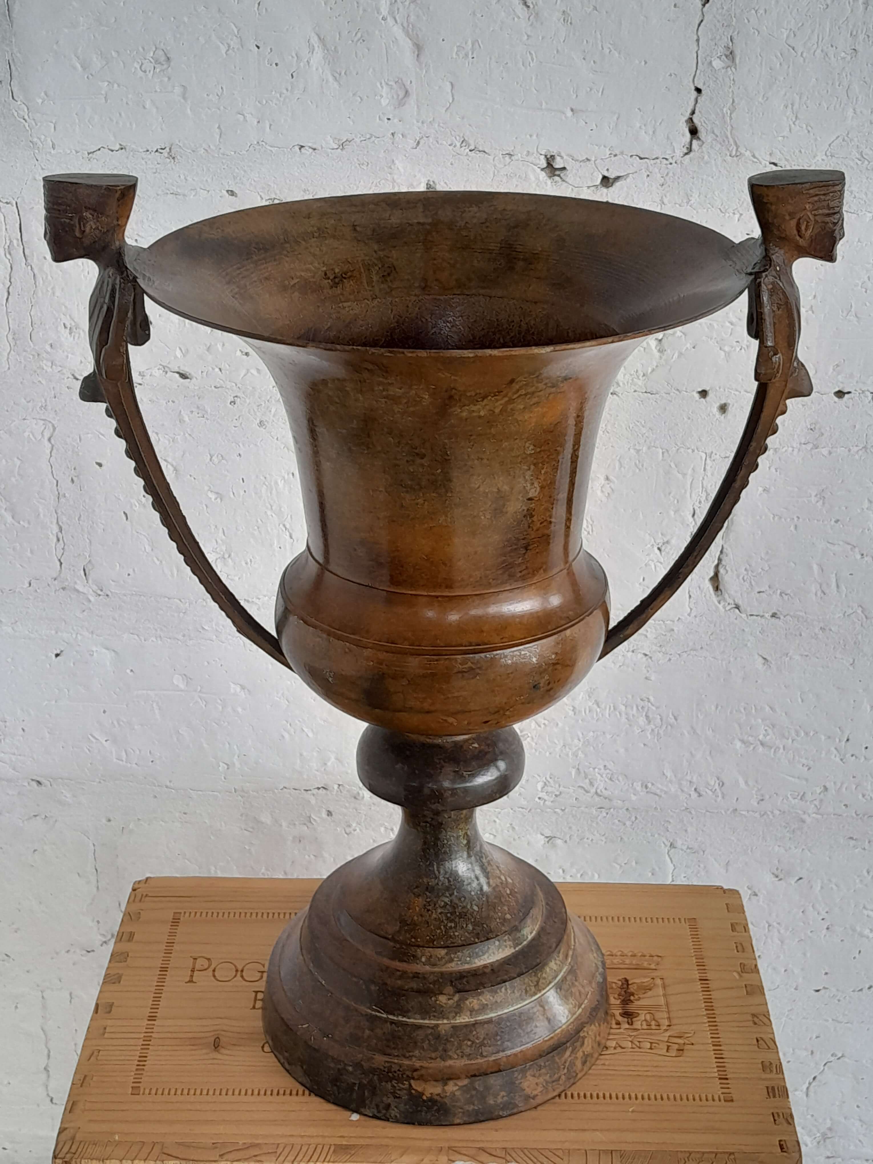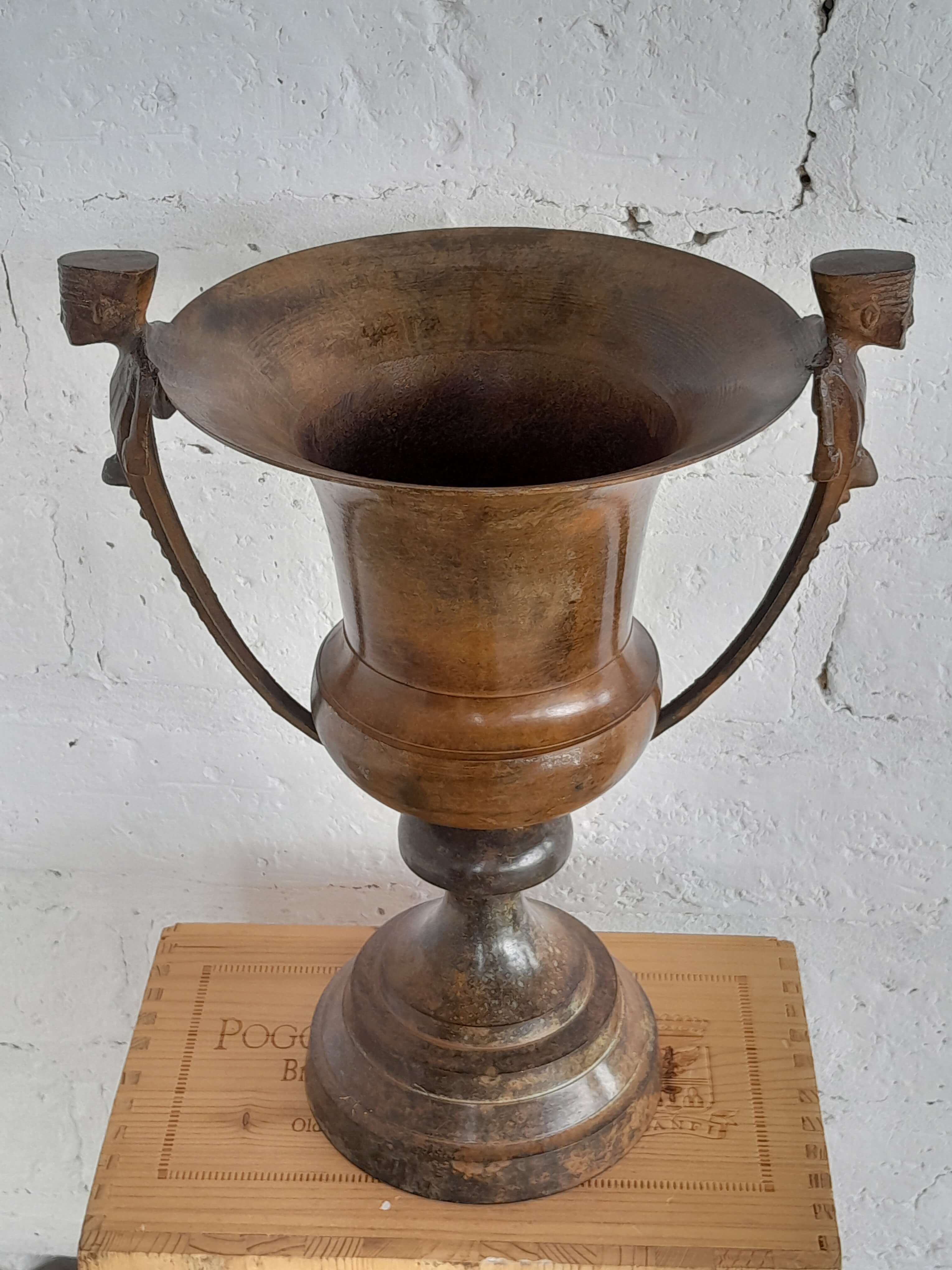 Jarrón vintage de brone pesado. Se encuentra en buen estado el color de la pátina logrado a través de los años le genera un aspecto desgastado.