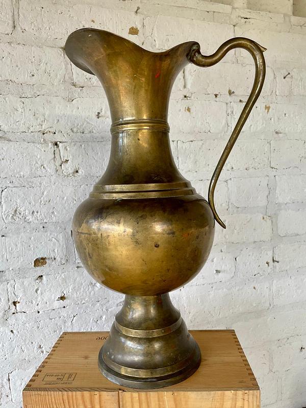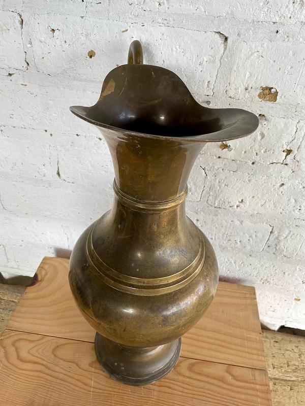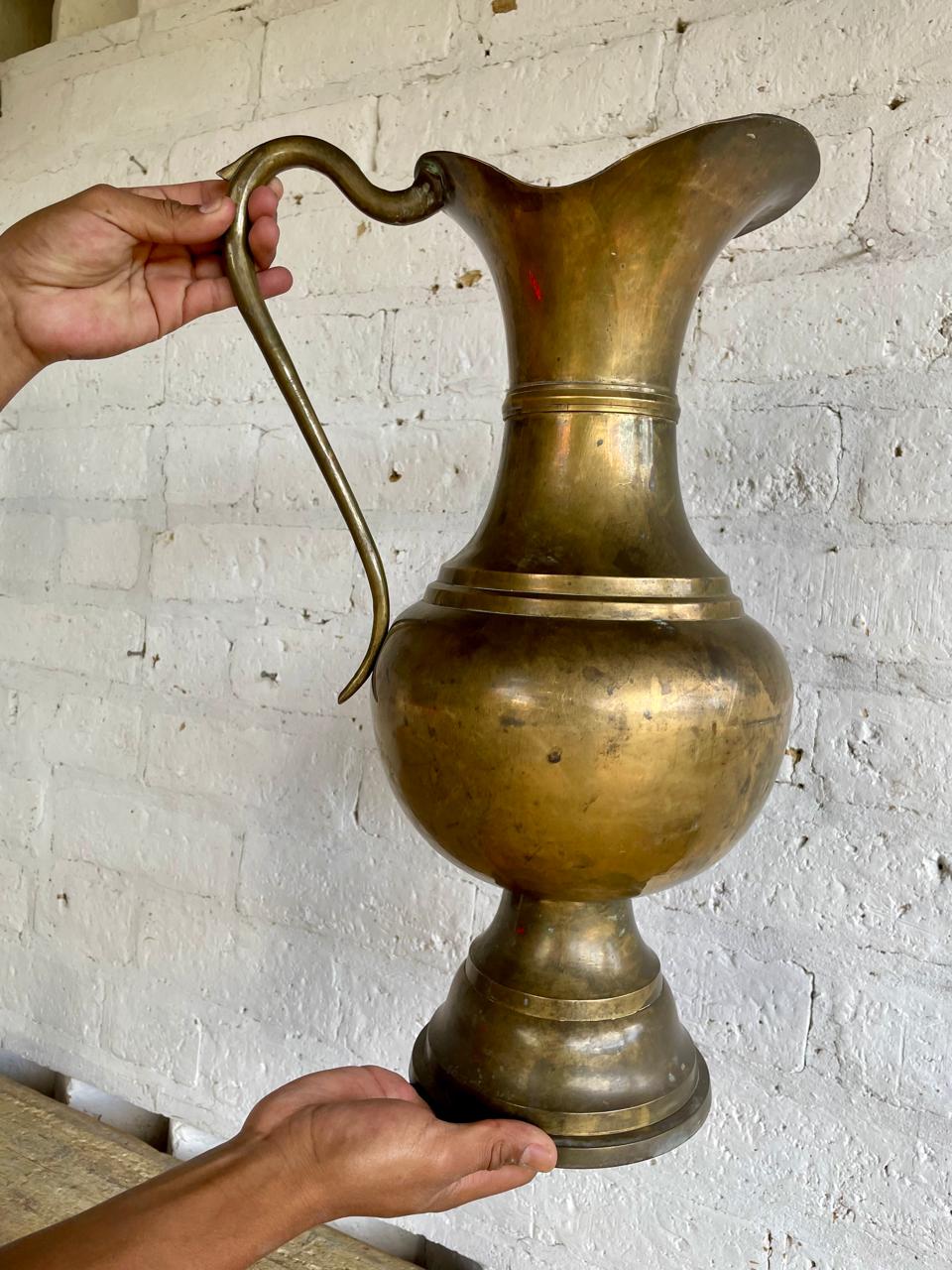 Enorme jarra elaborada en la India en la primera mitad del S XX, fabricada en lámina de bronce gruesa y pulida. Se encuentra en buen estado.