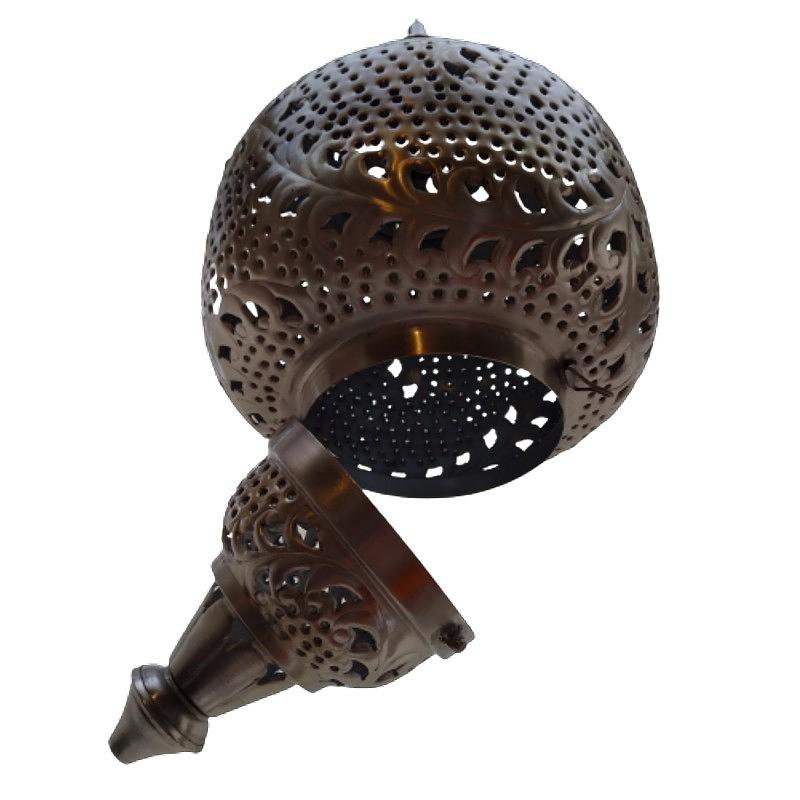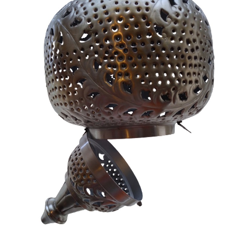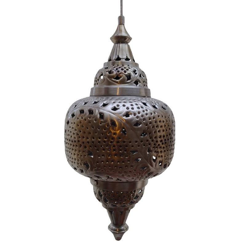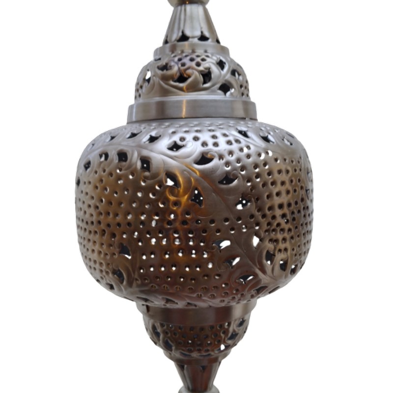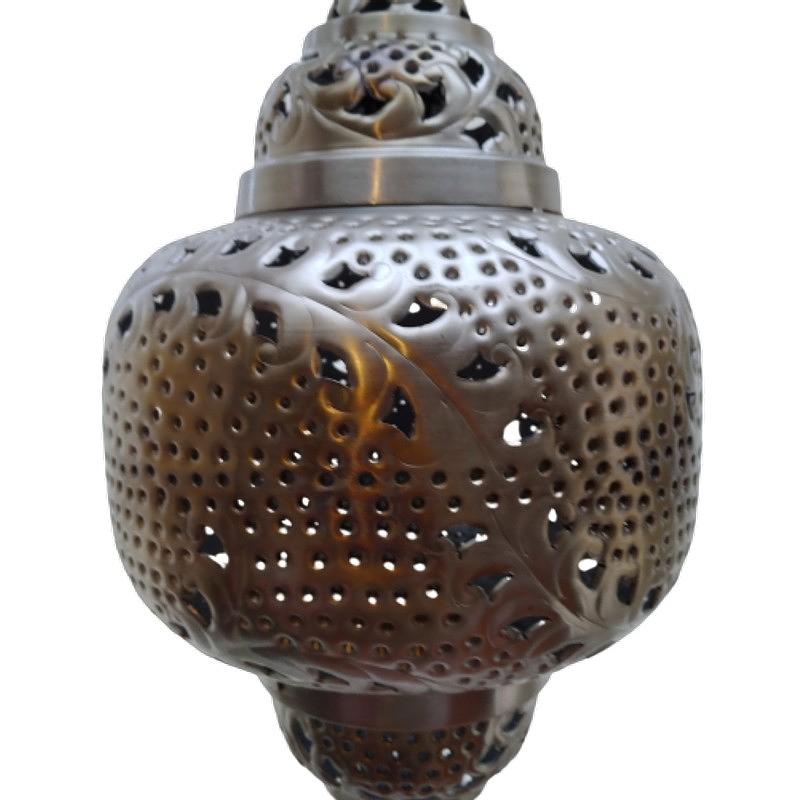 Lampara para colgar en el techo en latón grueso plateado y calado en la celosías.
