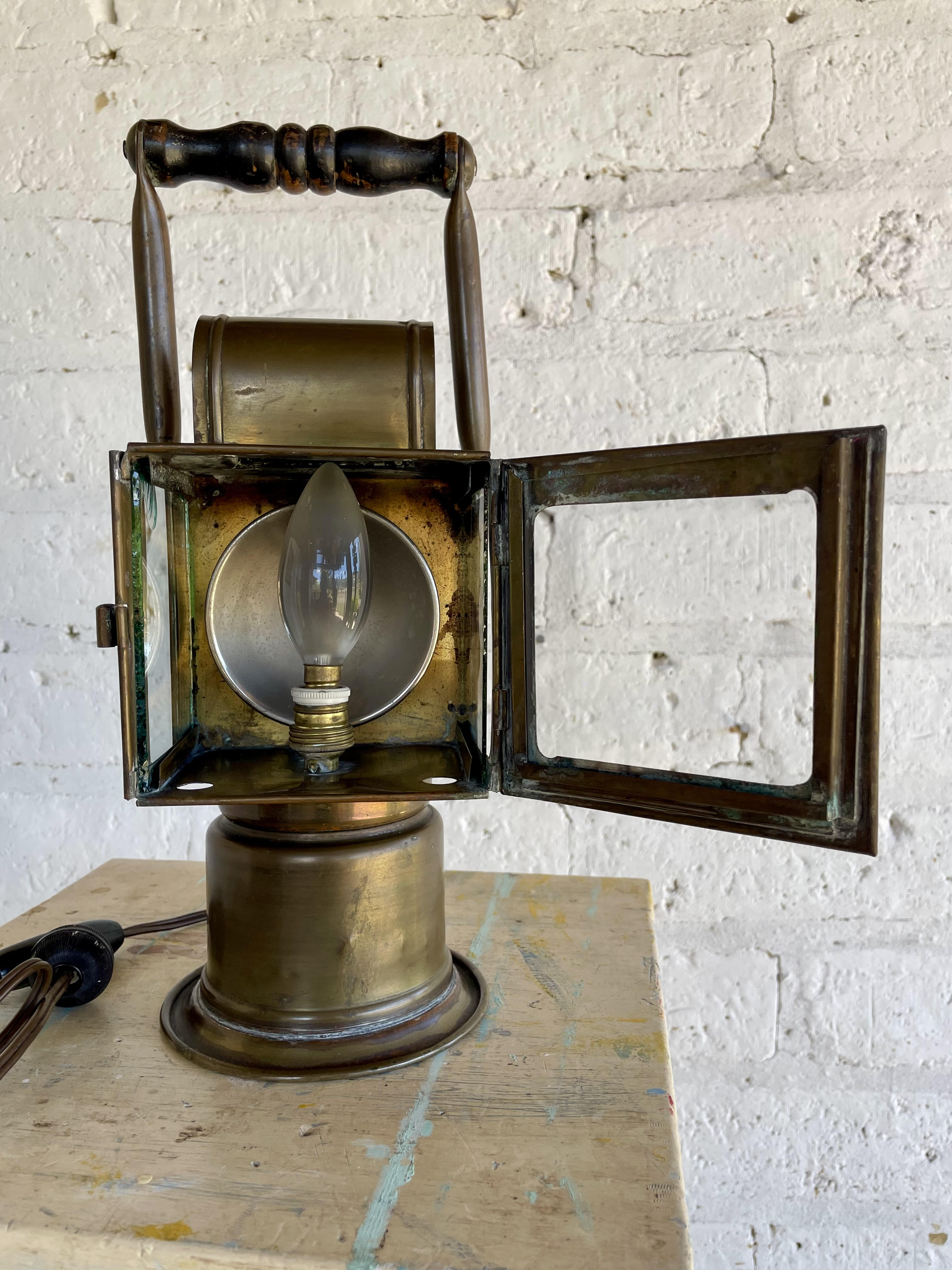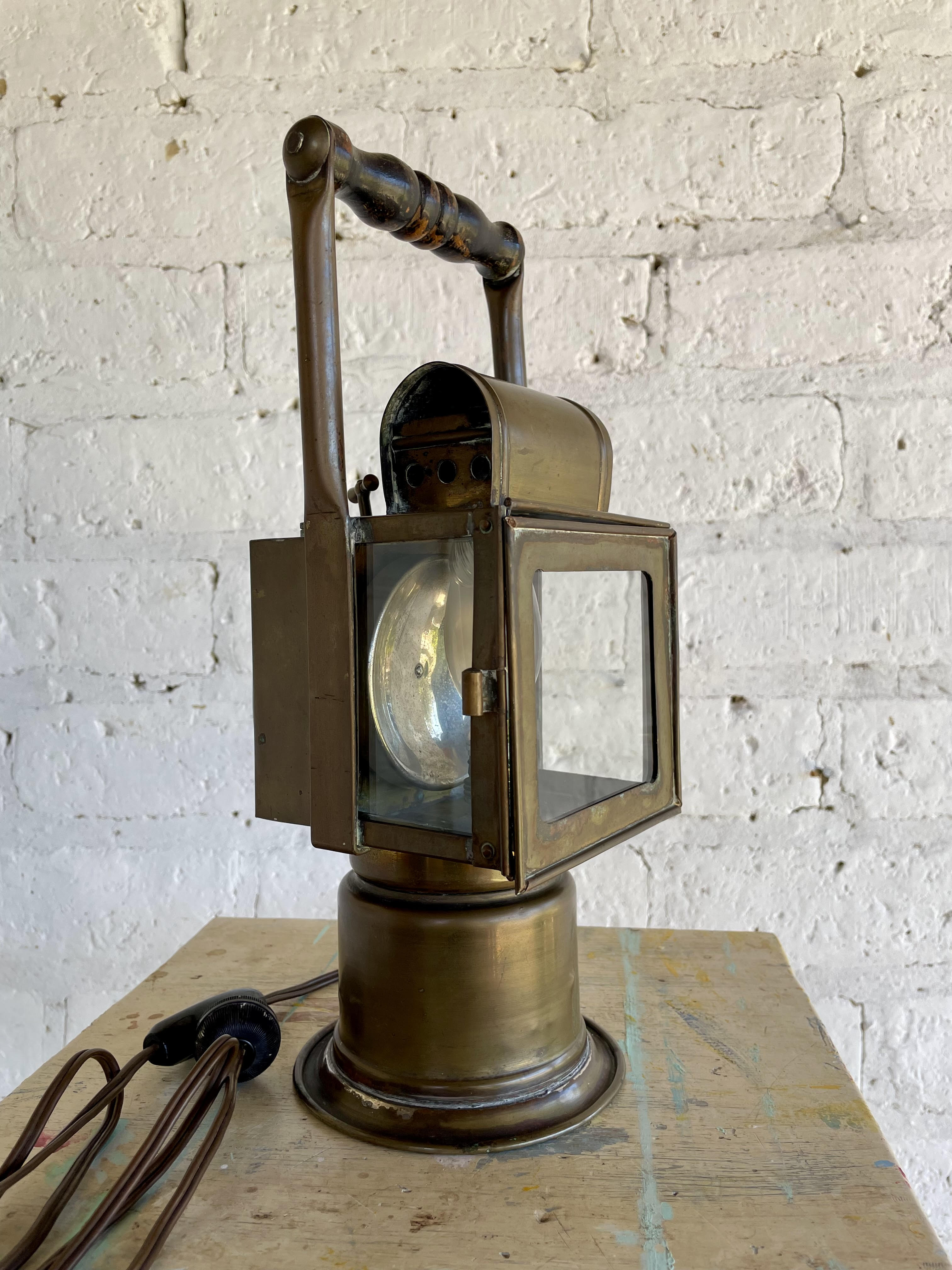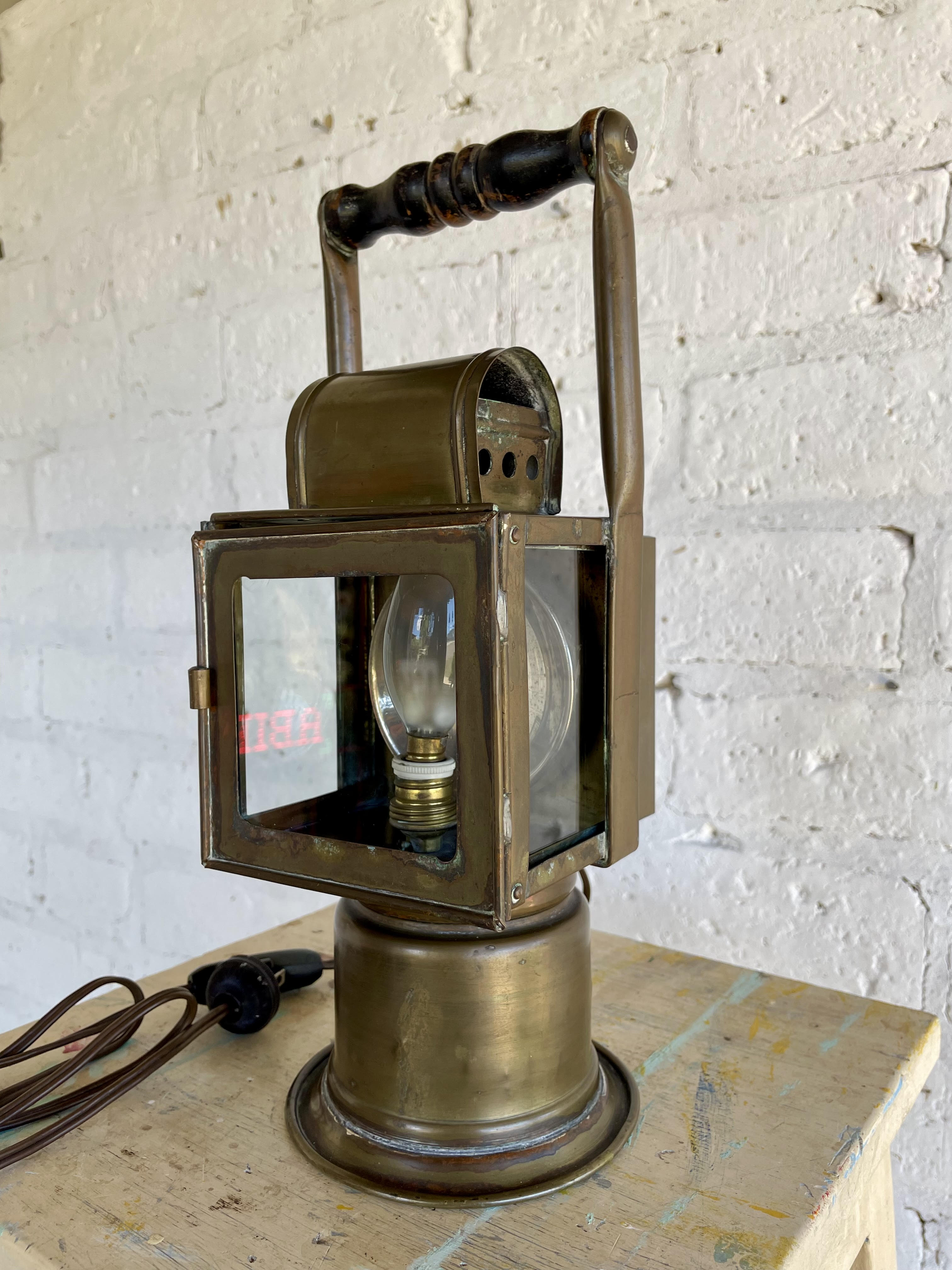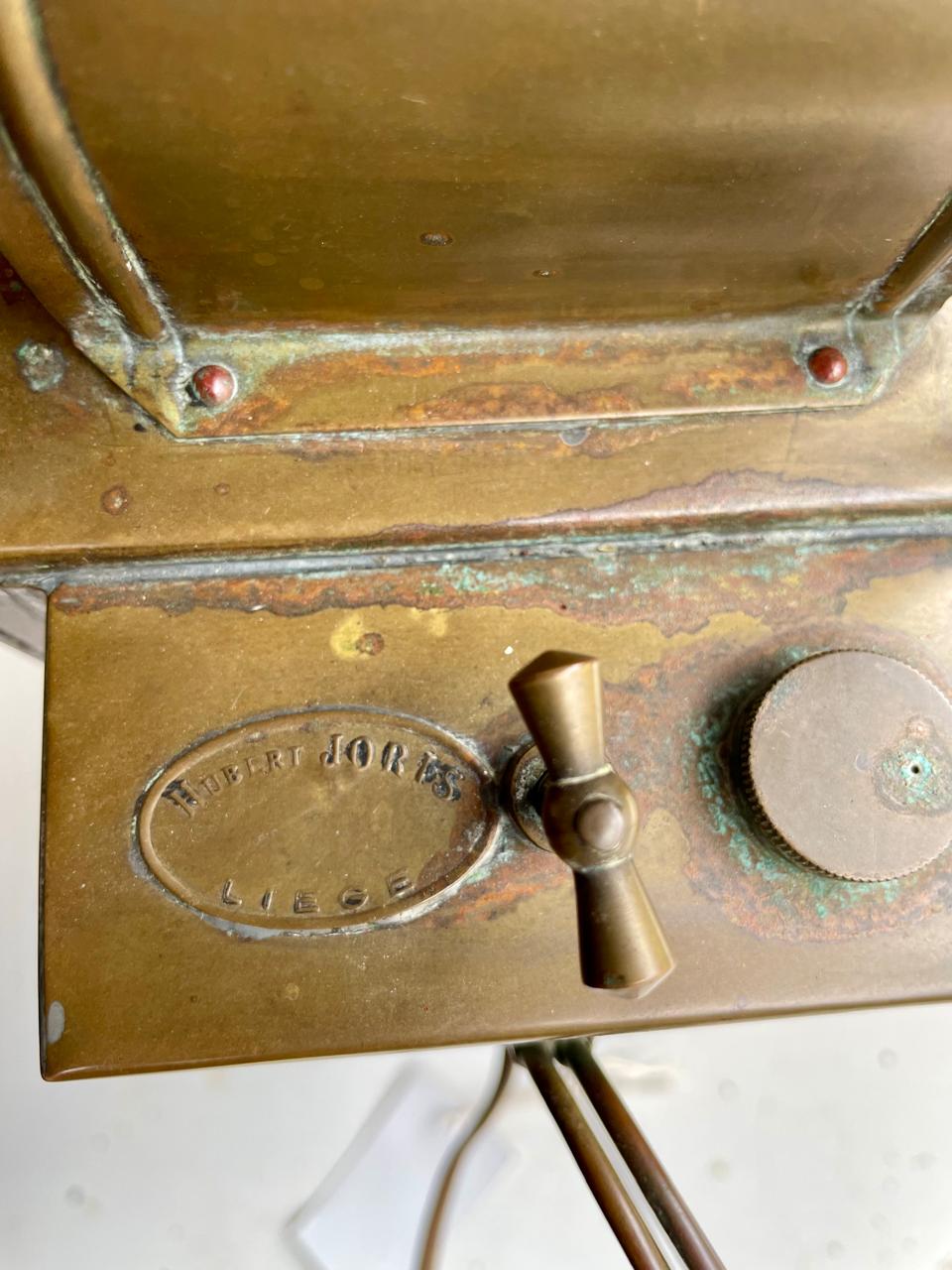 Farol de minero producido en la ciudad de Lieja en Bélgica en la década de los veinte por el fabricante Hubert Joris reconcido por inventar lámparas de seguridad para las minas de carbón desde finales del S XIX.