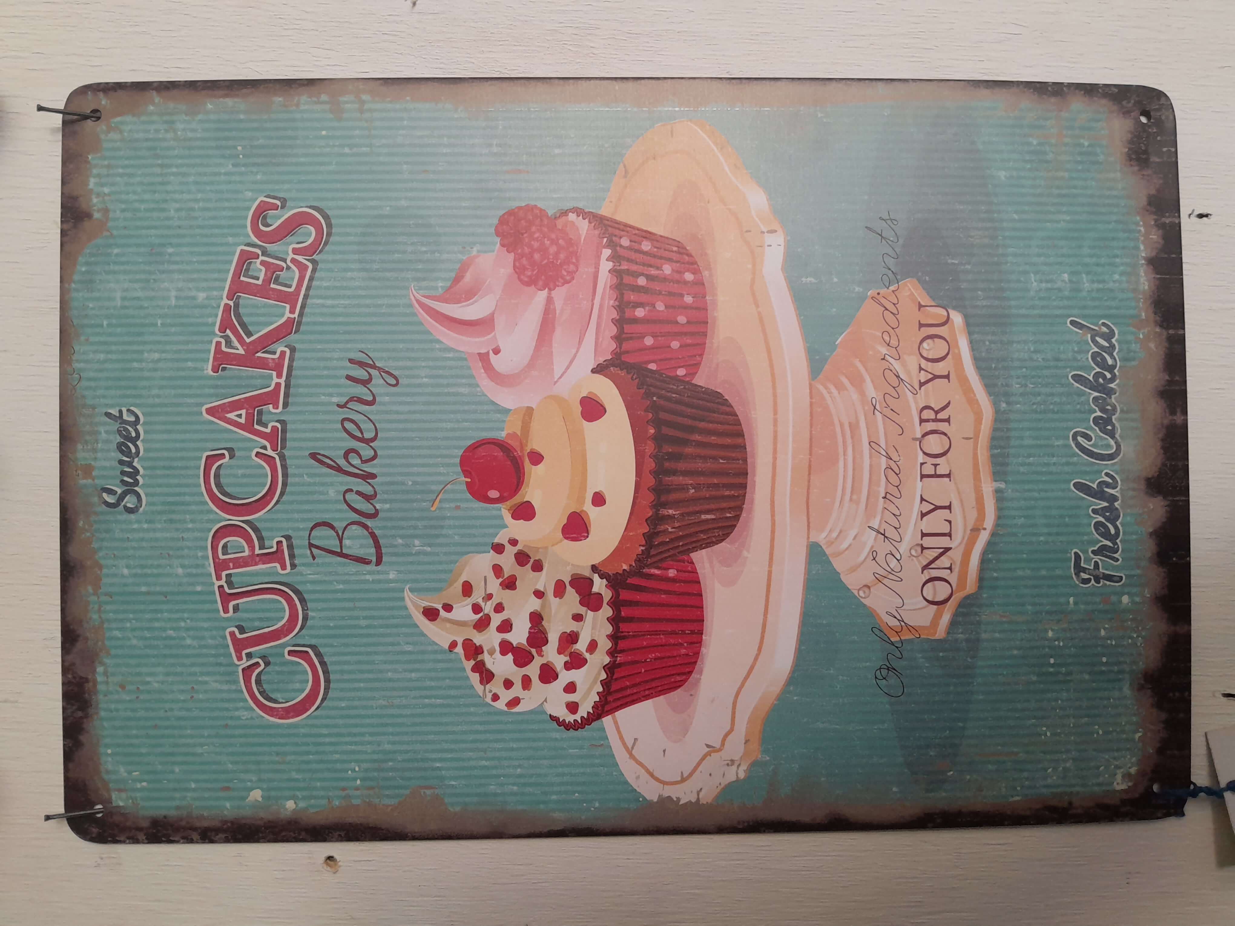 Cuadro estampado sobre lámina metálica de postres, elaborado recientemente con apariencia antigua