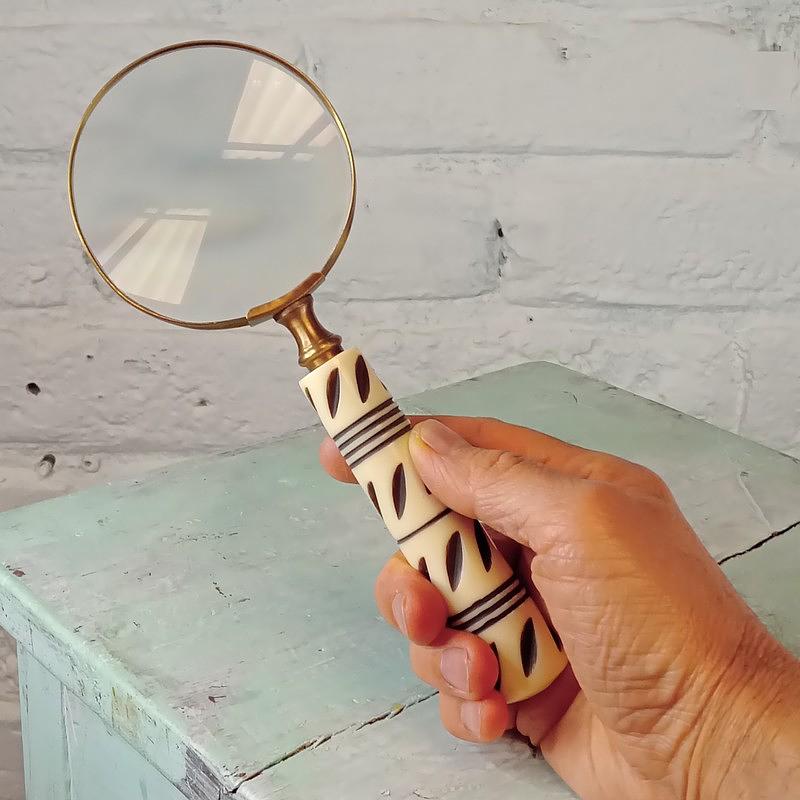 MEDIDAS: Largo de la lupa 20 cm. Diámetro del lente 7,5 cm.